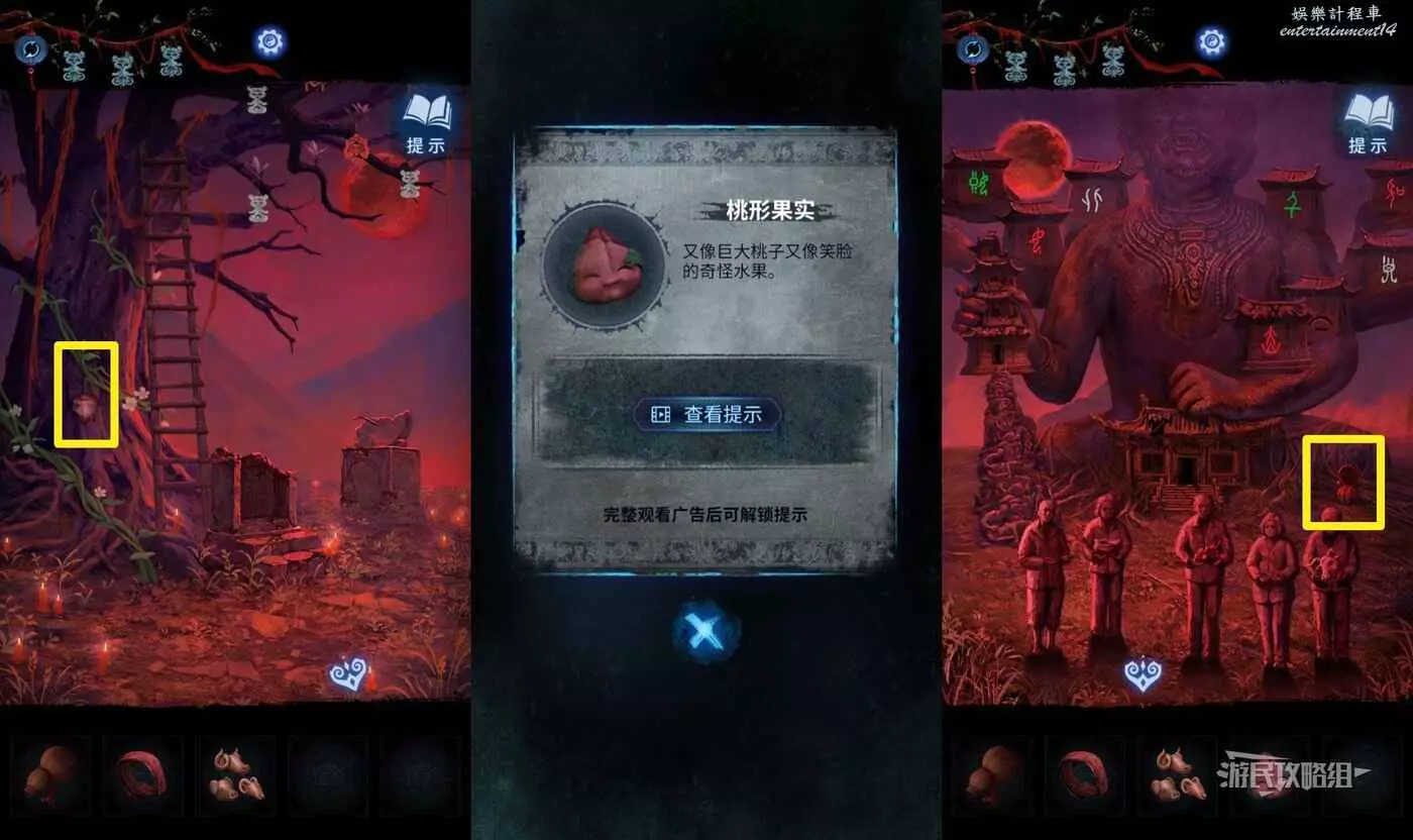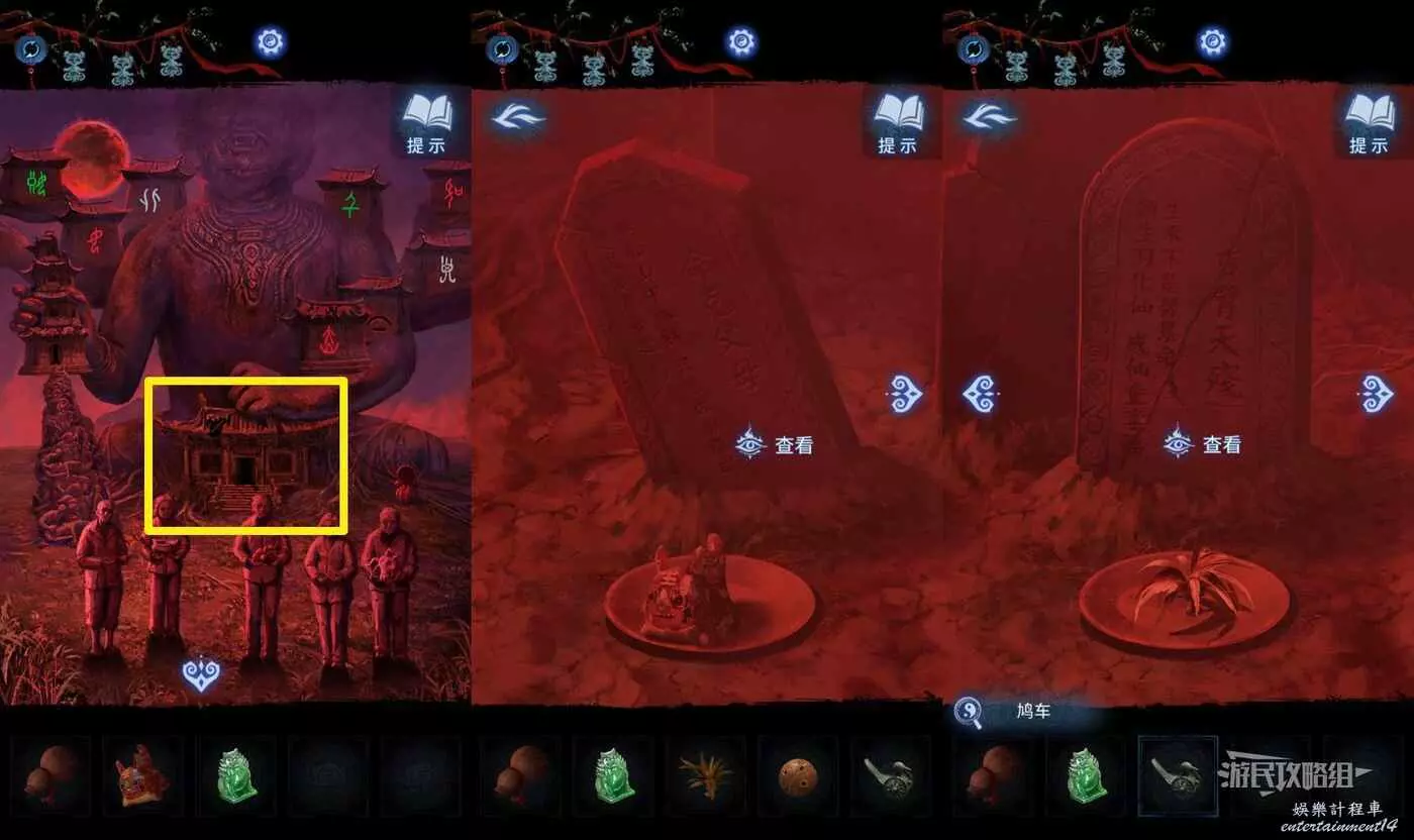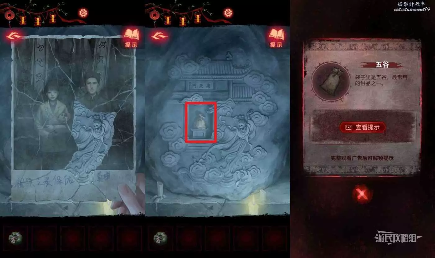【聶莫黎視角】離開塔內,進入樹根正下方的廟內,點擊中間的供桌,分別在道具欄中選擇【石榴】和【五穀】放在對應位置,觸發劇情。