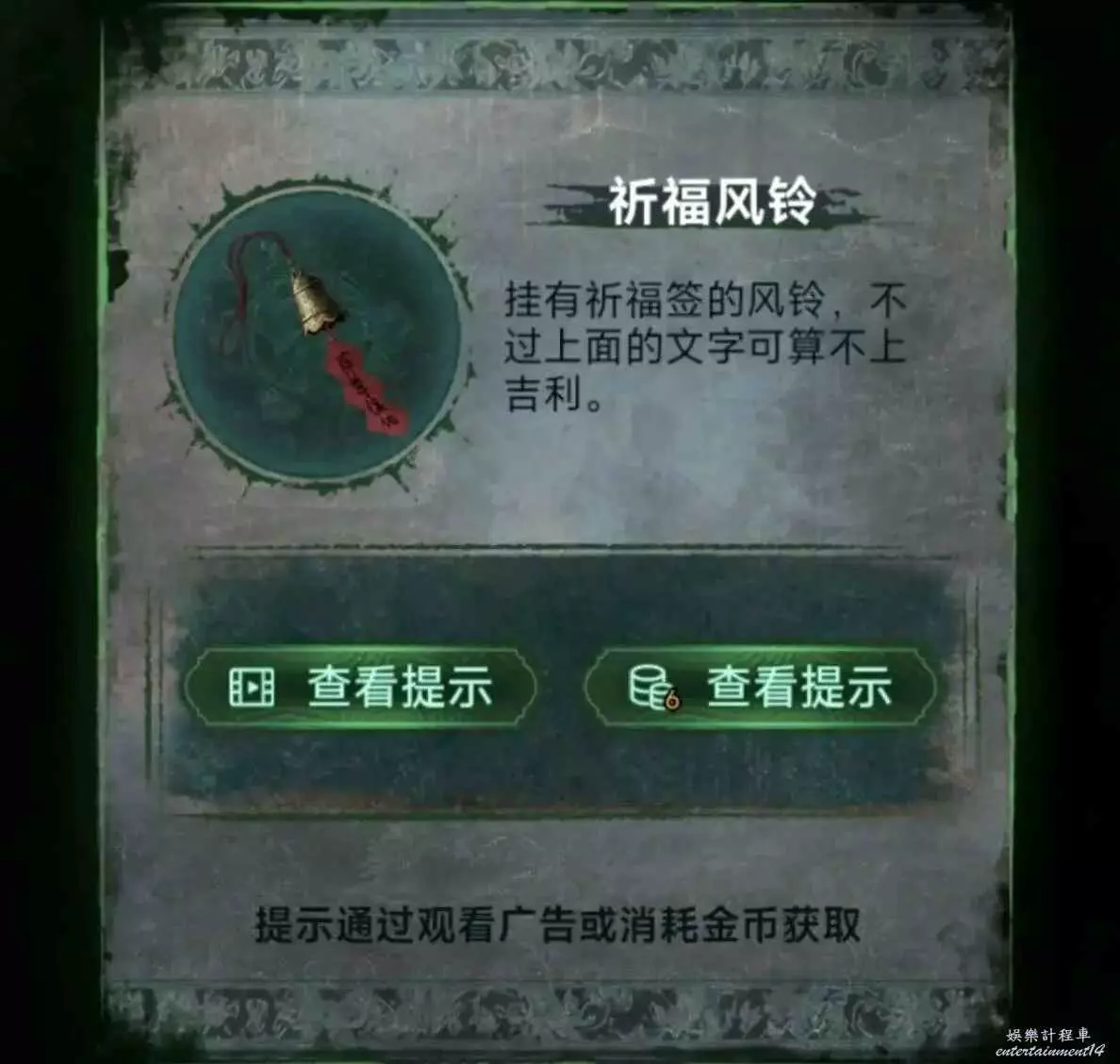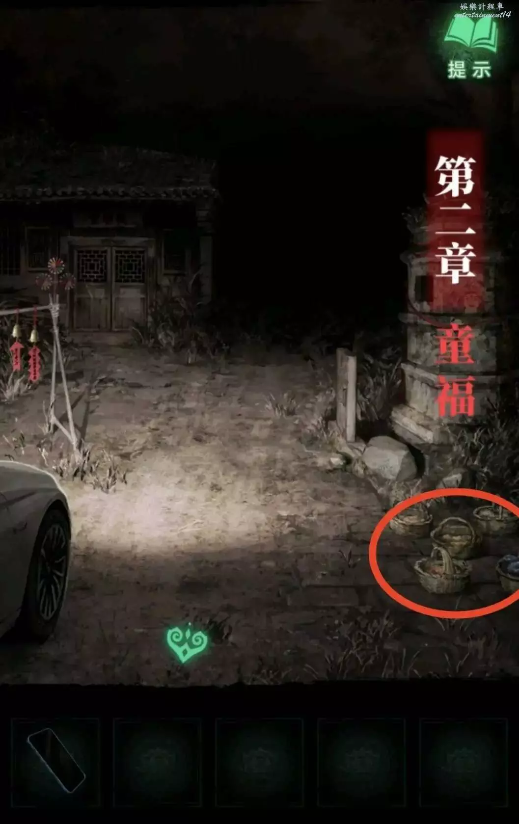 7、把缺少的風鈴補上,獲得線索4,通過線索4的順序打開二樓的門鎖。