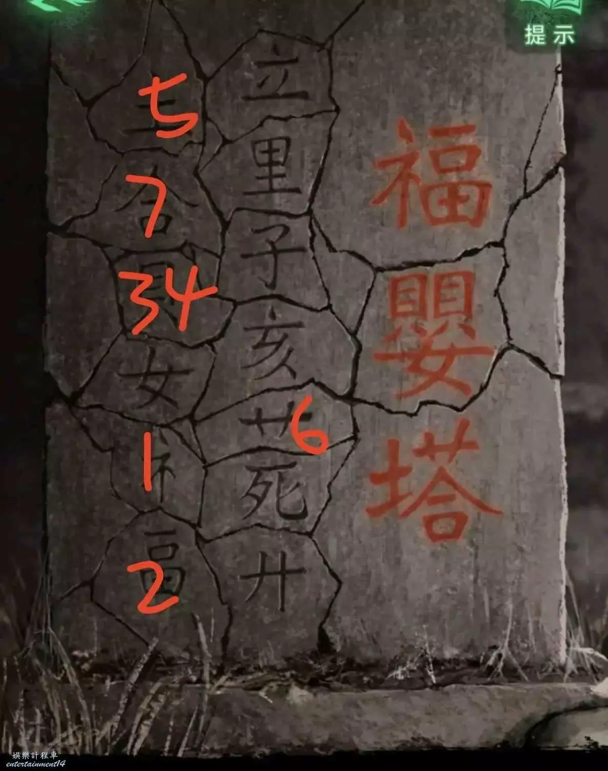 4、把石片裝上石碑,點亮石碑上的字(如圖),左邊的門會被打開。
