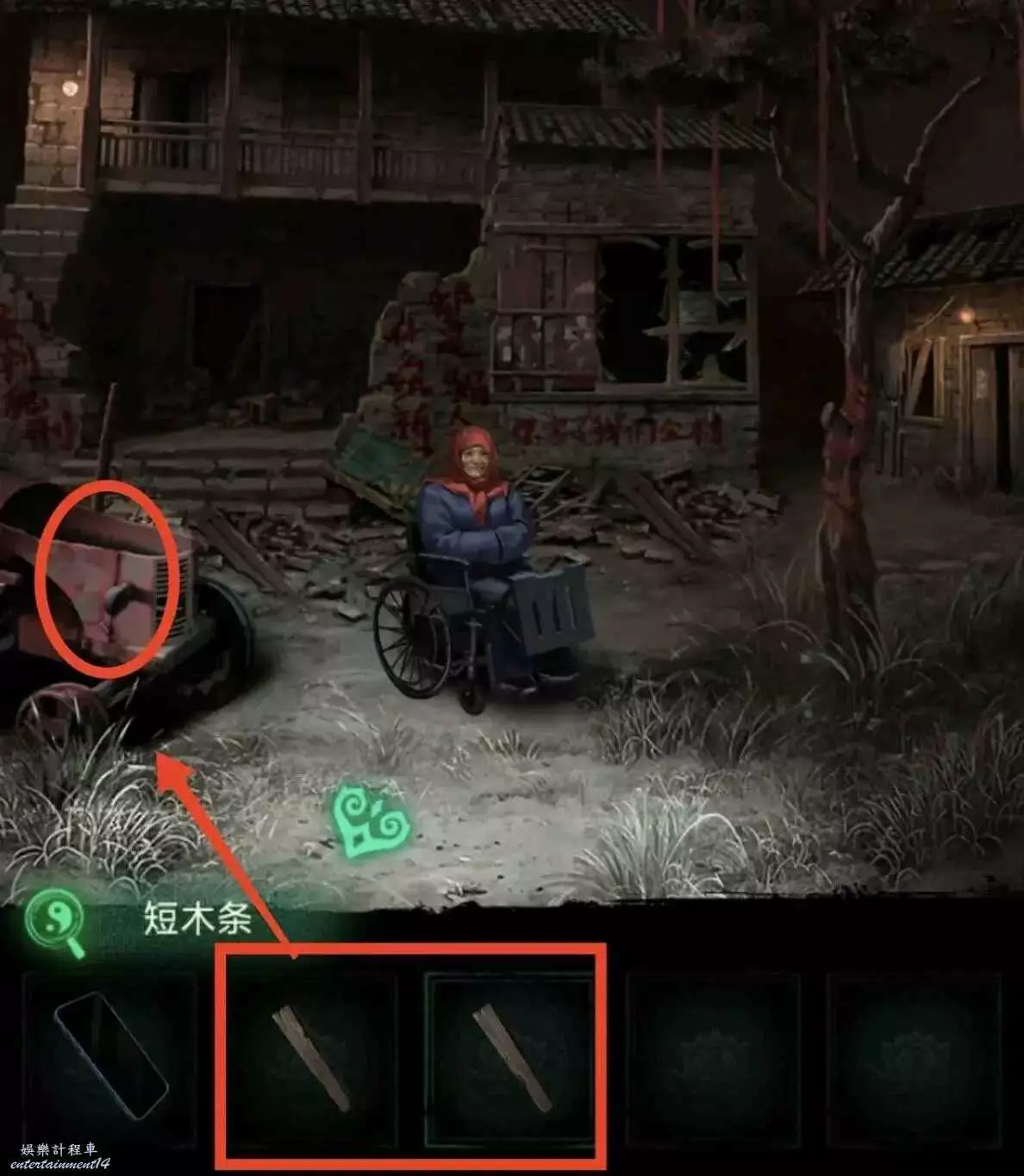 10、面人喂給二樓雕像,獲得木條2。把兩根木條給拖拉機裡的小人裝上,結束本章。
