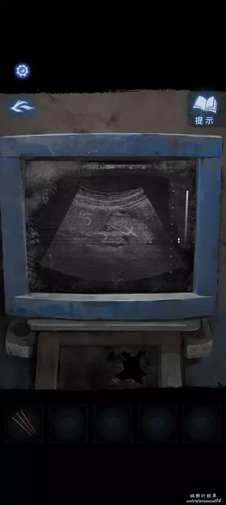 11:在病床上連接探頭,調整位置分別為大腦和胃,通過旁邊的B超機。得到數字196524。