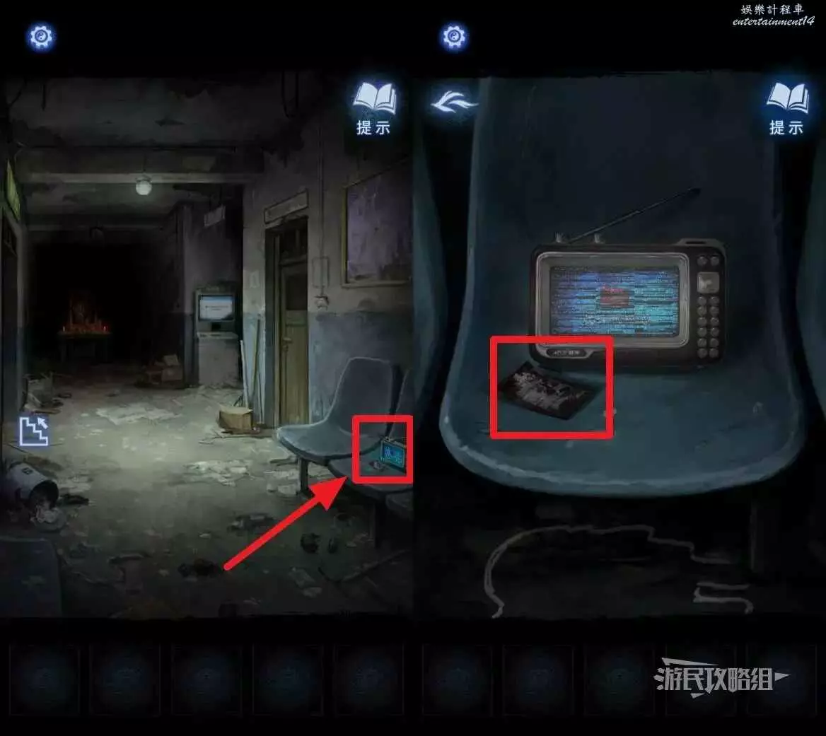 點擊右側椅子上的唱戲機,拿到【憑條】。