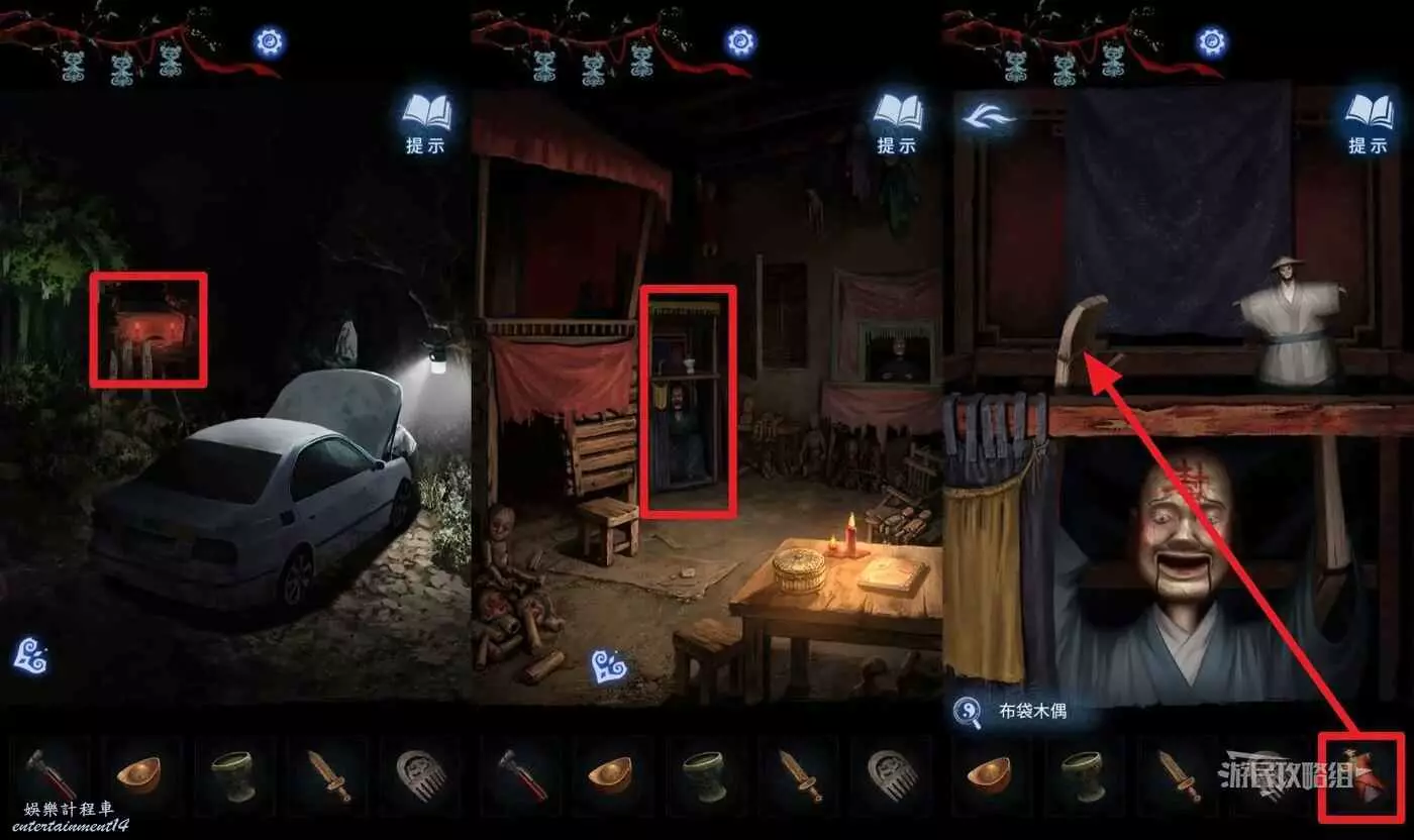 回到車旁邊進入【棄煞牢】,在道具欄中選擇【布袋木偶】(有音效小高能),觸發劇情。