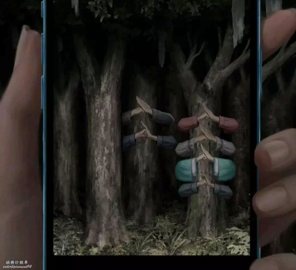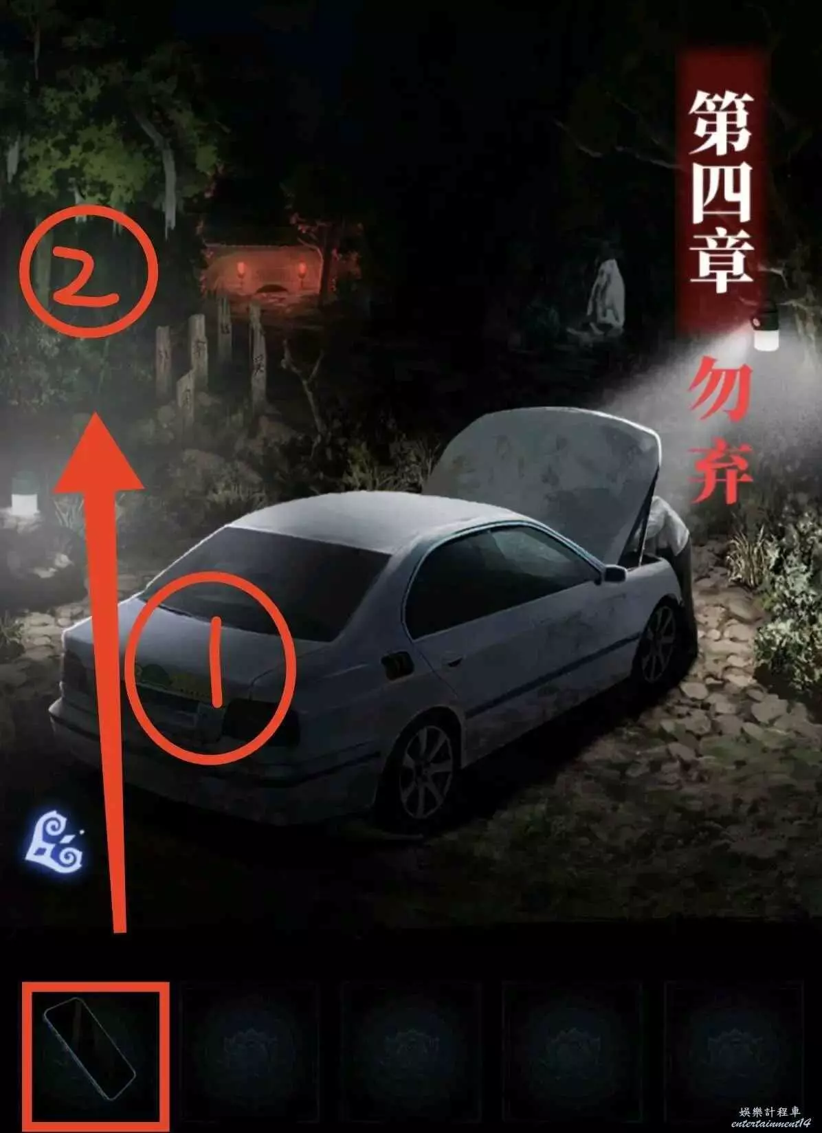 然後去小樹林用手機拍照,獲得線索1,去墳包按照線索1解謎如圖4,得到蠶絲香囊。