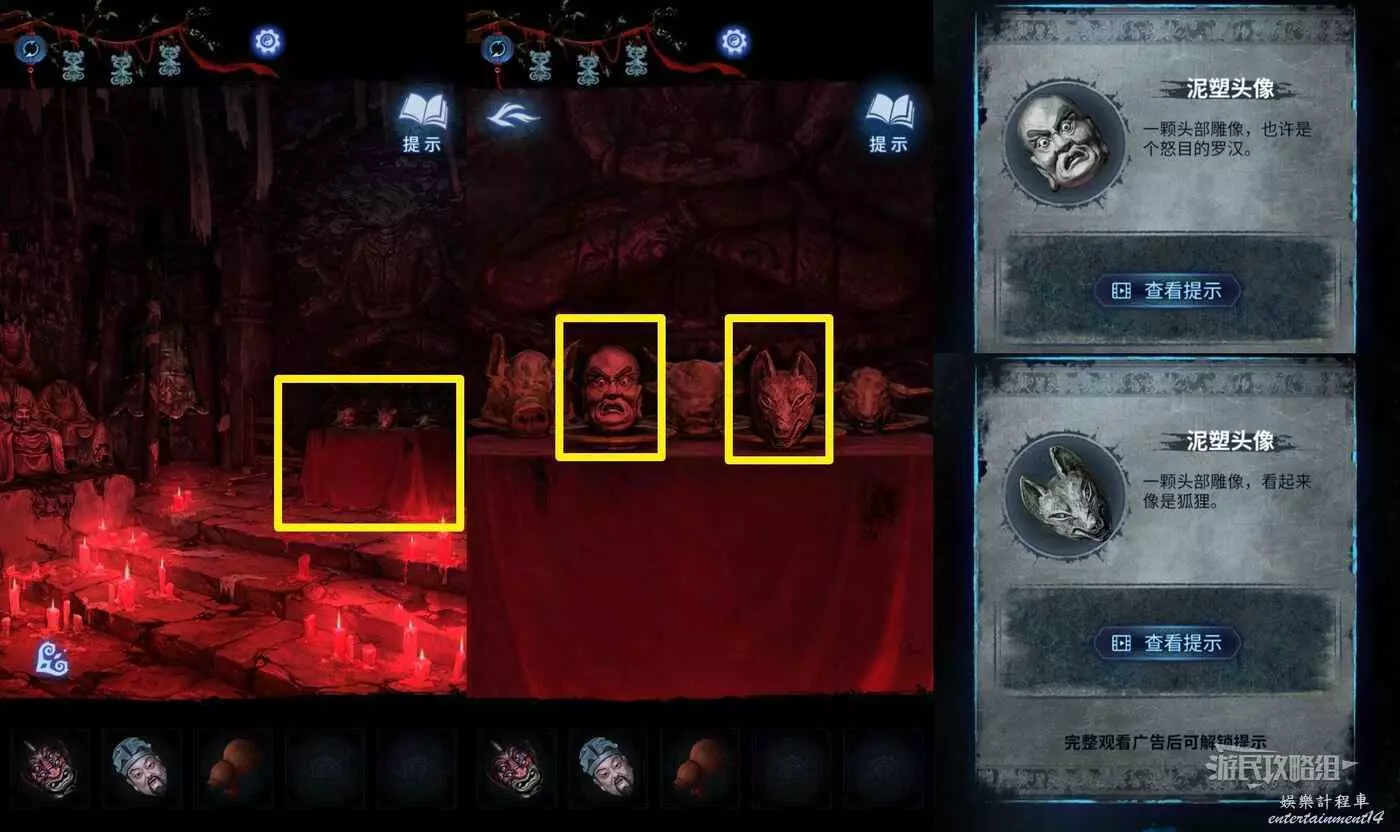 【聶莫琪視角】進塔之後,點擊介面右側的台子,拾取兩個【泥塑頭像】。
