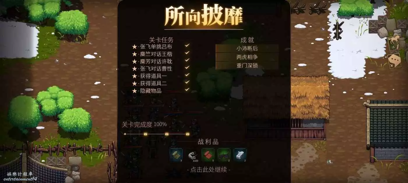 1.本關張飛部隊擊退敵人數量越多,則下一關出現的敵人數量越少。若能擊退呂布,則下一關呂布不會出戰。