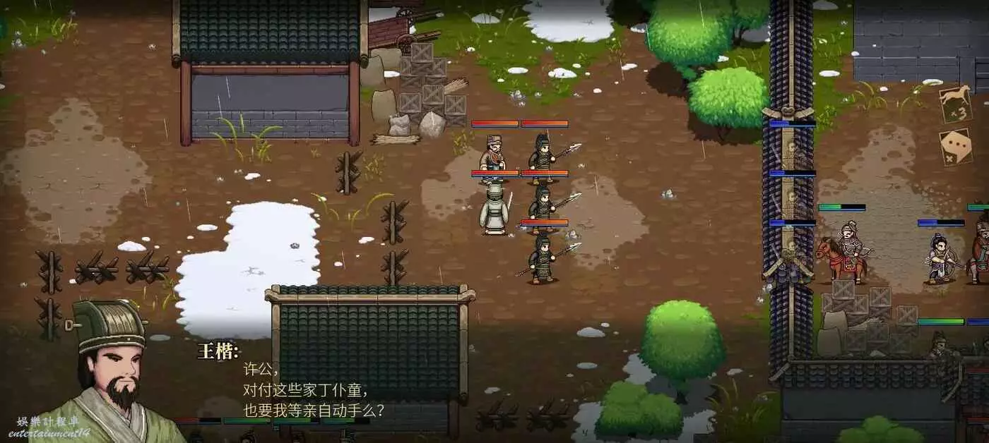 第8回合 王楷(道士)部隊(參謀1個+3個長槍兵)從北門進攻糜府