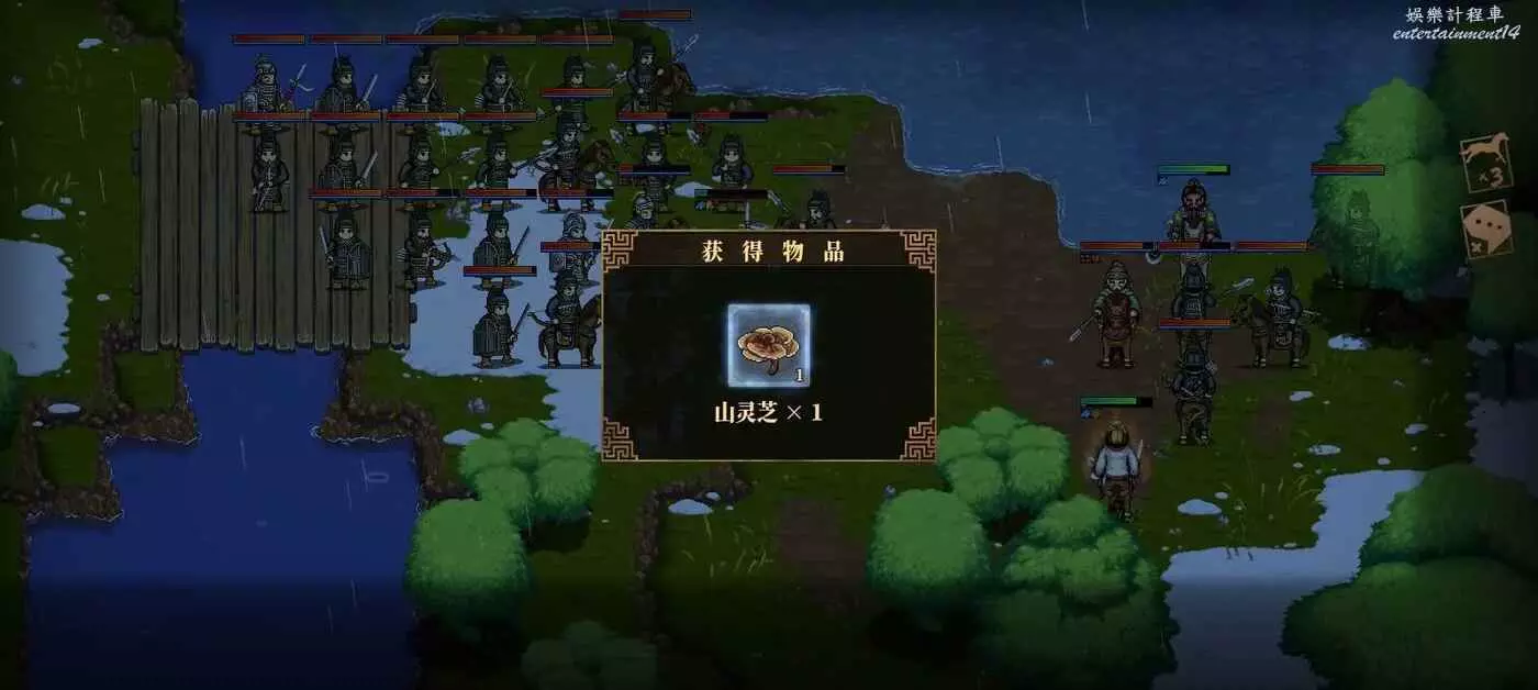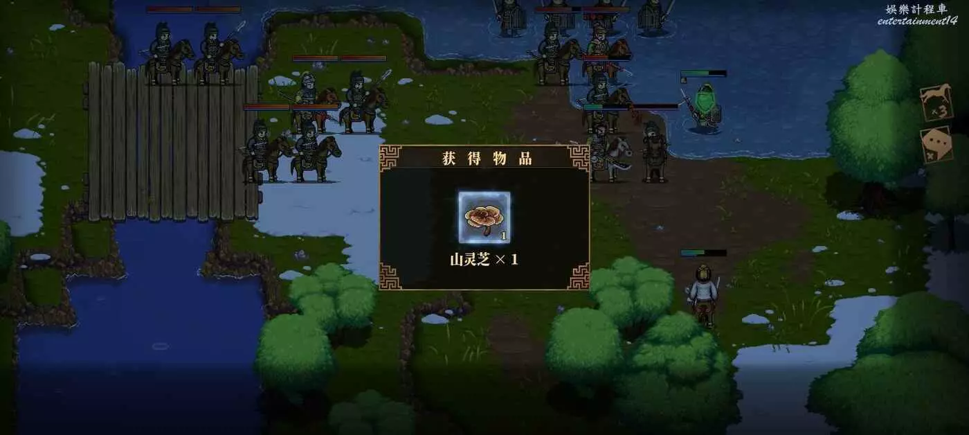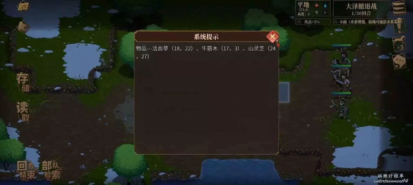 上岸後調整隊形拾取山靈芝(24,27),等待侯成進攻觸發任務