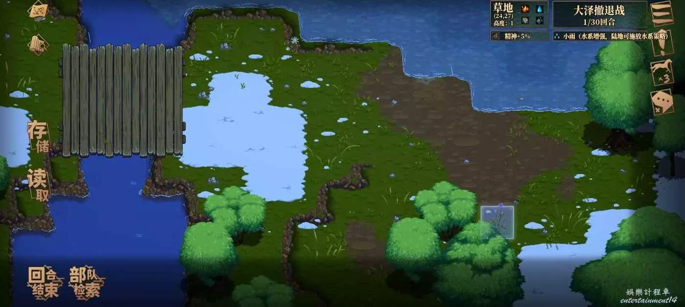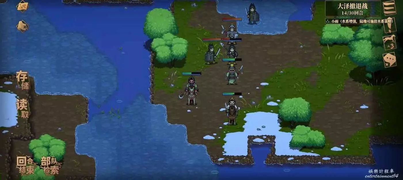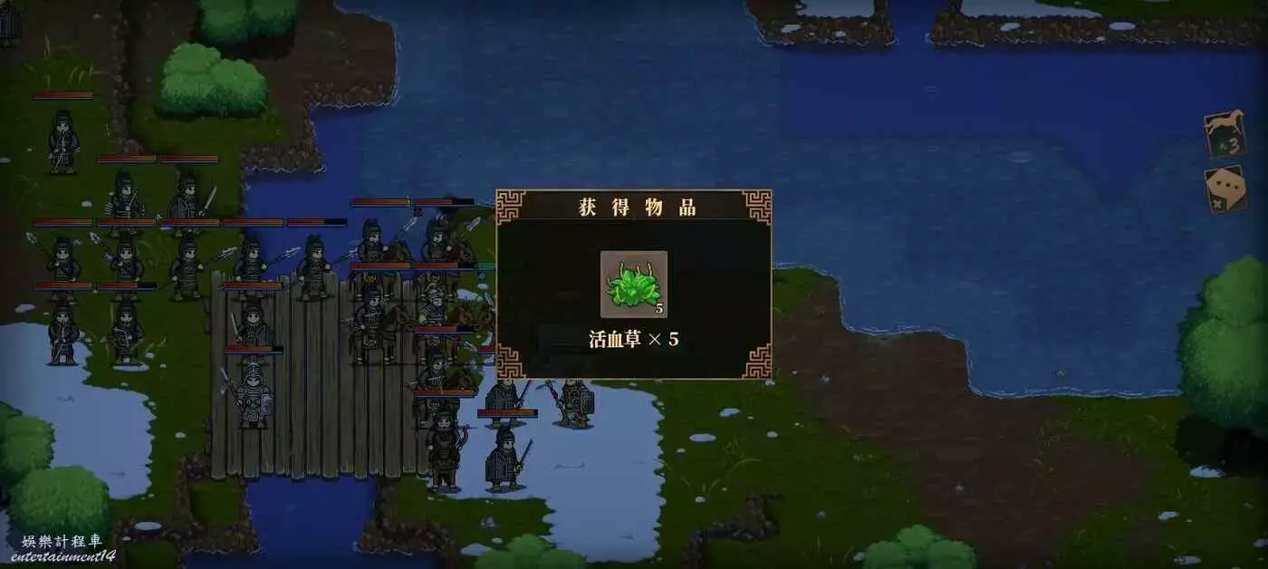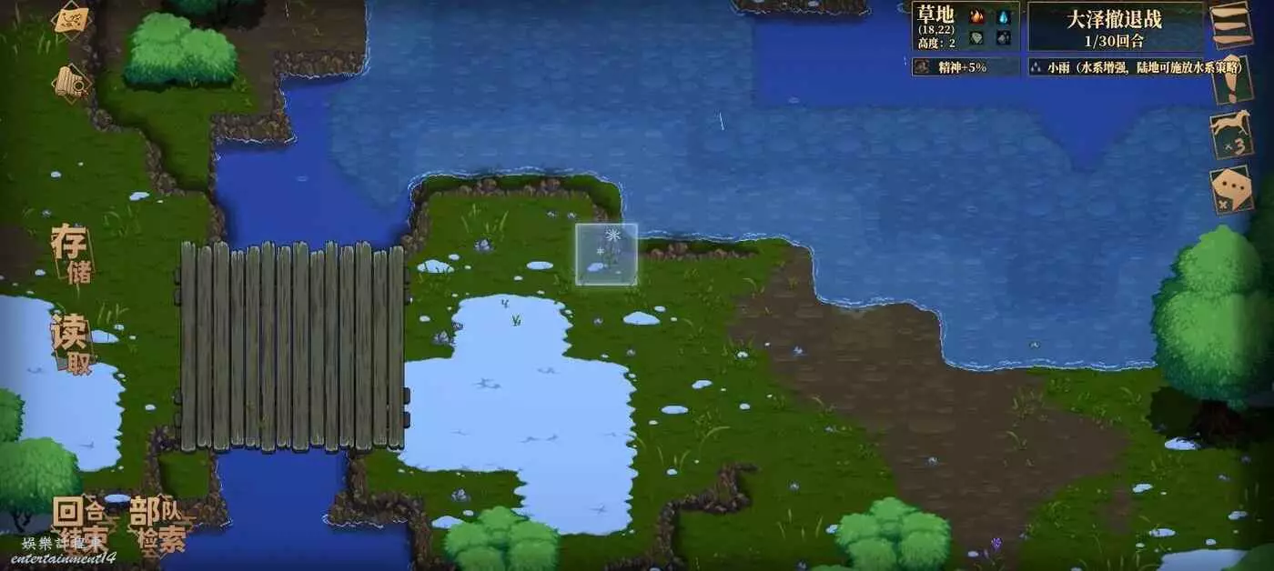 關羽先行上岸拾取活血草(18,22),劉備和陳到陸續撤離