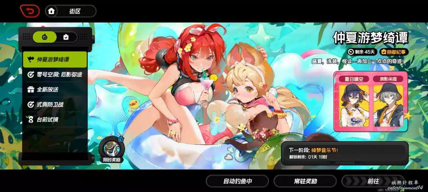 整個版本活動包括3種玩法「熱焰衝浪」、「環島射擊」、「遠海極釣」,使用不同衝浪板助力愛麗絲完成衝浪挑戰,不同的射擊彈助力柚葉拿下所有射擊目標,重新拾起釣魚王的稱號釣遍大魚裝飾水族館,為度假村的振興貢獻你的力量。