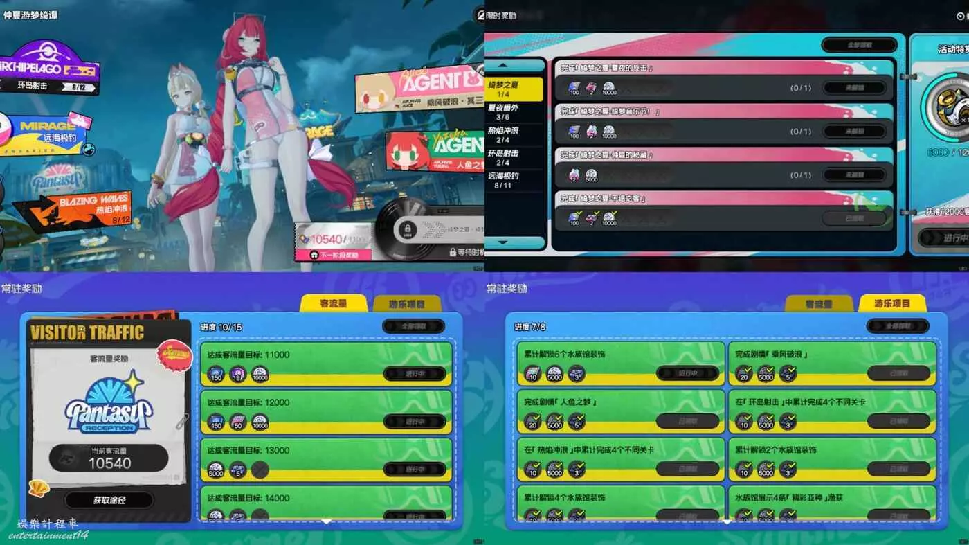 客流量=環島射擊(3600)+熱焰衝浪(3600)+水族館魚類(2400)+劇情任務,拉滿獎勵只要15000,最終肯定是高於這個數量的。