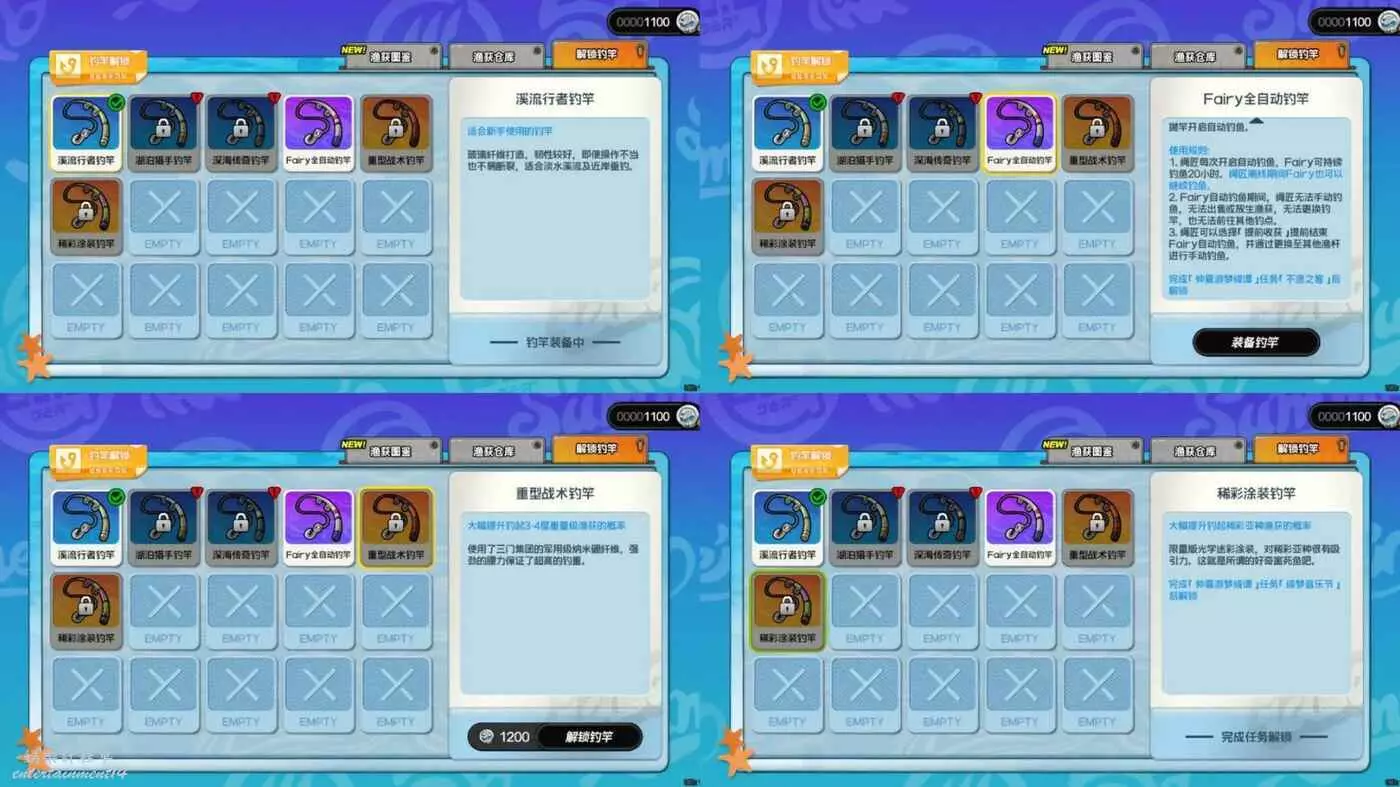 懶人模式就用自動釣竿釣魚就好了,稀有物種等劇情任務解鎖的稀彩塗裝釣竿釣稀有品種就好了。