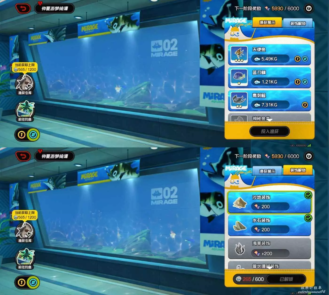 裝飾需要代幣解鎖,每個階段的售賣魚獲取代幣有上限,合理規劃代幣使用。