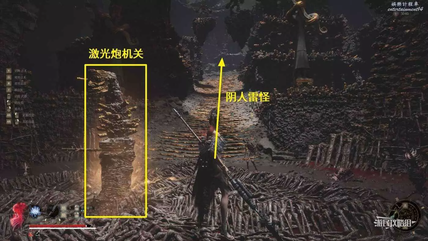 走到頭前方又會遇到一個鐳射炮,往神龕跑的路線上沒有關閉此鐳射炮的機關,所以建議先看完下文,記住路線後快速通過。