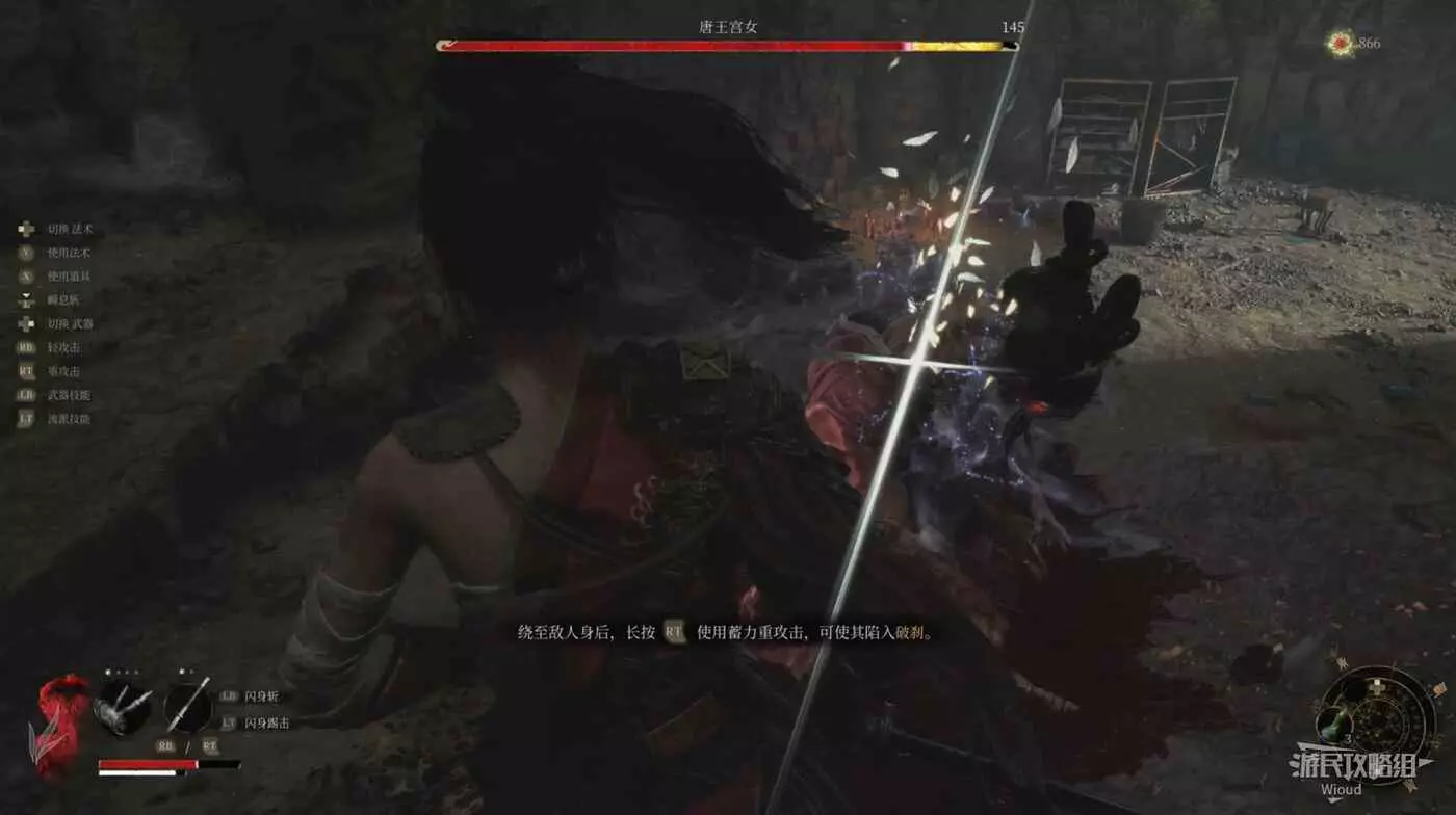 利用地形把宮女勾引到上坡處,直接從高處下劈攻擊,此時BOSS必定倒地,接一個處決再次回到高處重複此操作即可。