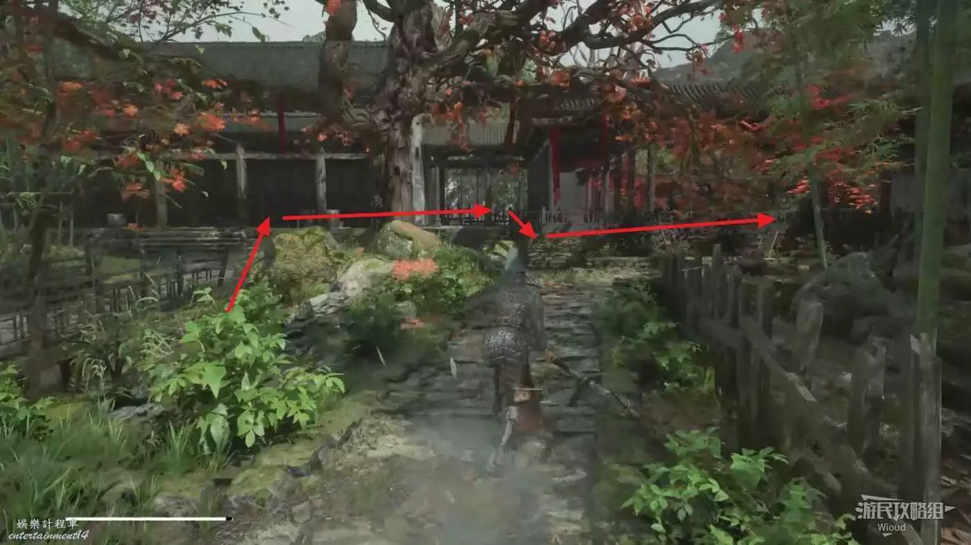 頂部樓梯口沿著下圖路線往之前打BOSS【陸紅柳】的院子走,裡面會觸發夢魘-心魔的BOSS戰。