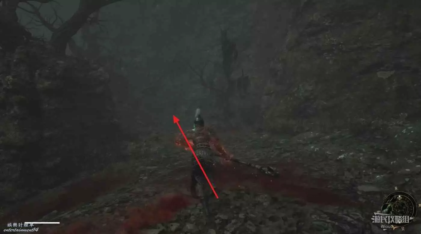 從【真武山】地圖神龕【鳥人沼澤】出發,離開小屋先直走然後往左後方繞。