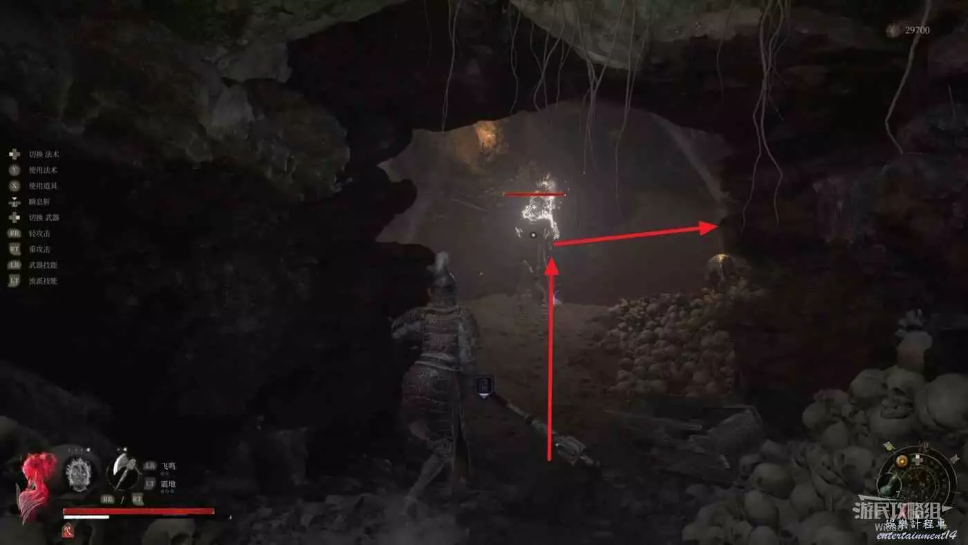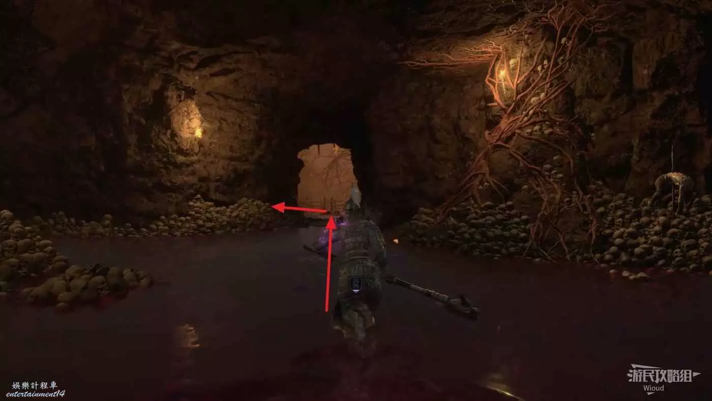 先直走進入洞穴然後左拐,小心被陰兵堵路,穿過第一個陰兵會有滾石下來,需要立刻貼左牆躲避。