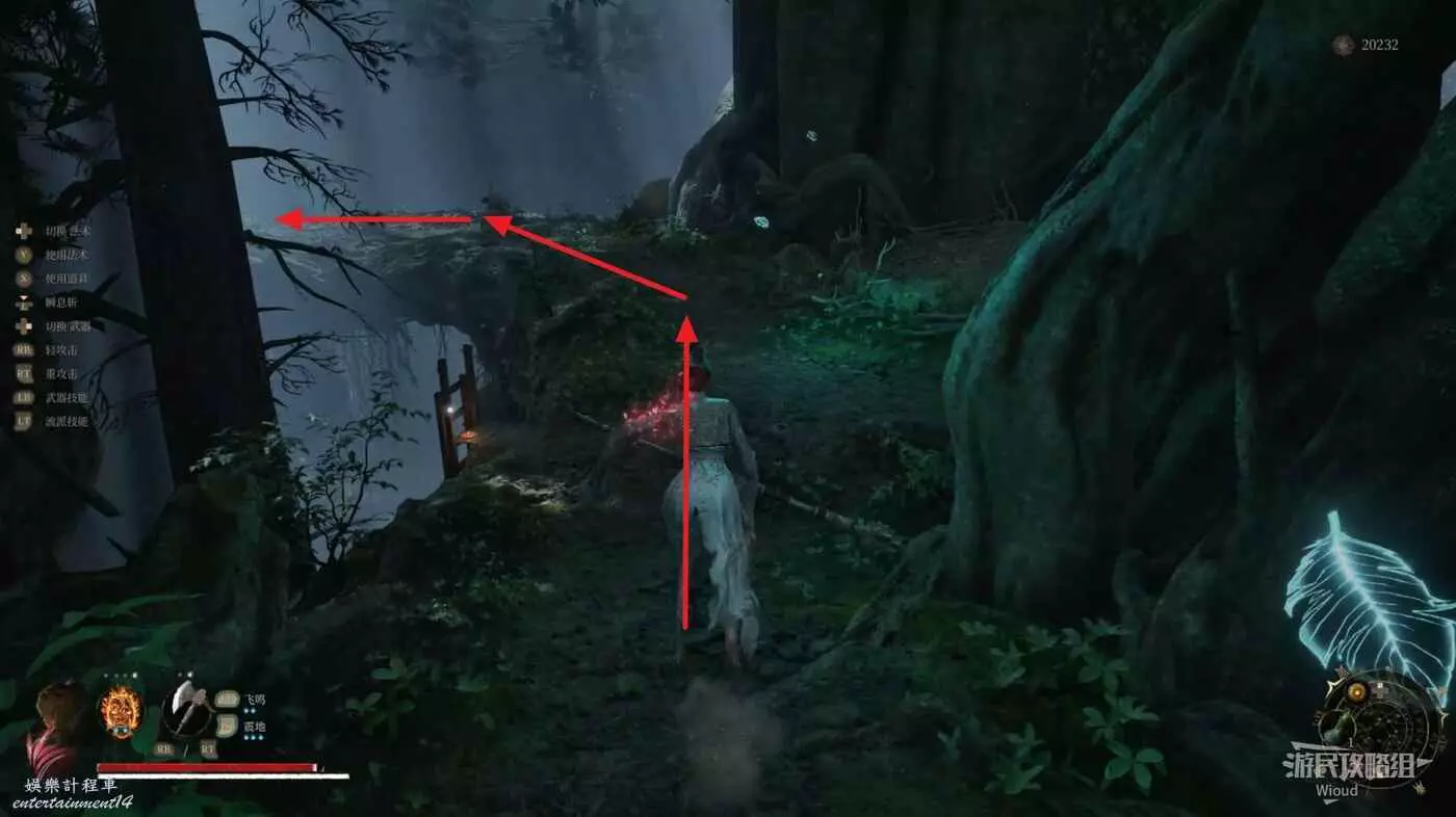 也就是上頁拾取【明耀紅羽】的位置,底部往左走,我們走左側平路然後左拐。