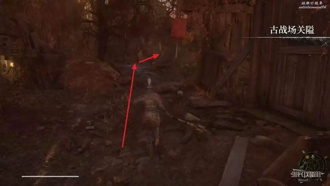 從【真武山】的【古戰場關隘】開始,面對神龕走右邊城牆的缺口到一個村子。