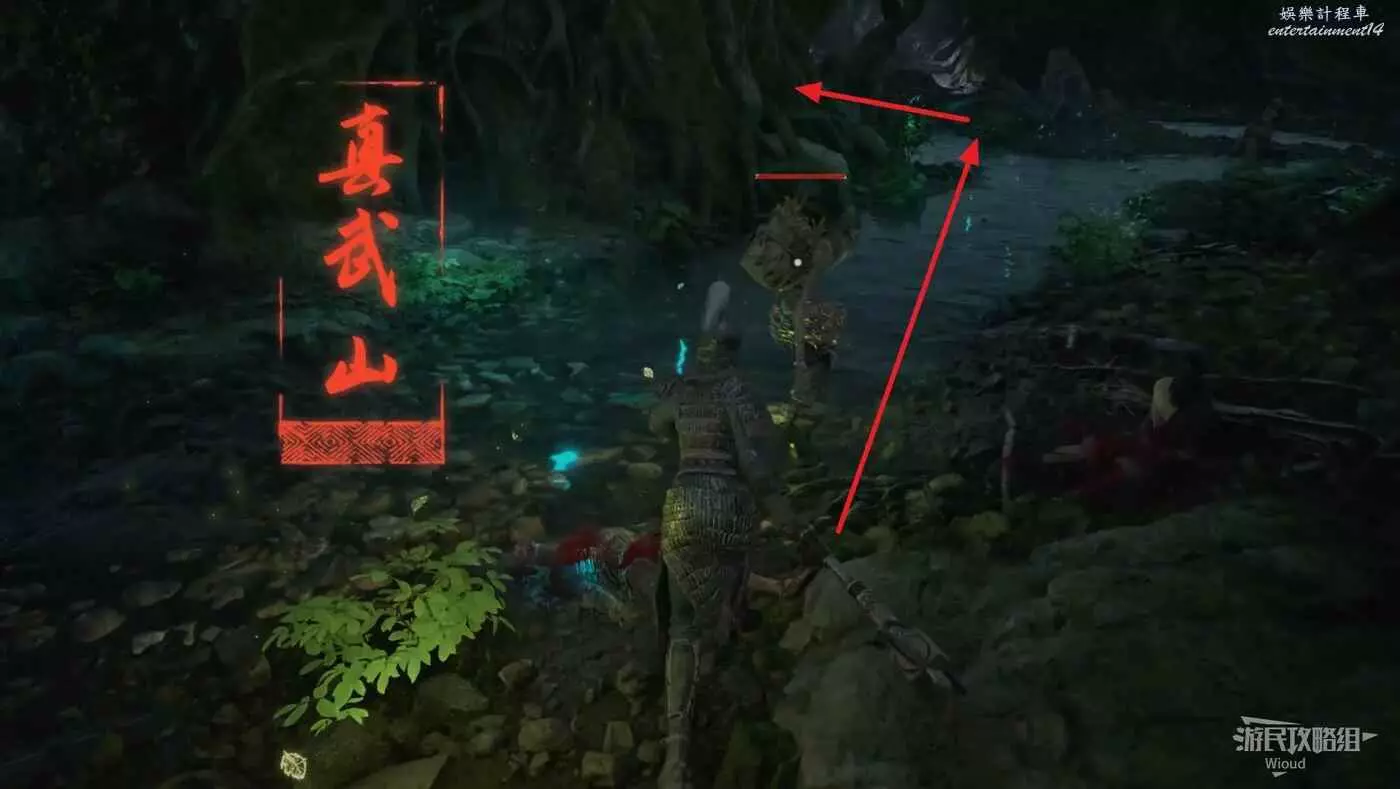 從【真武山】地圖神龕【鳥人沼澤】出發,離開小屋先直走然後往左後方繞。