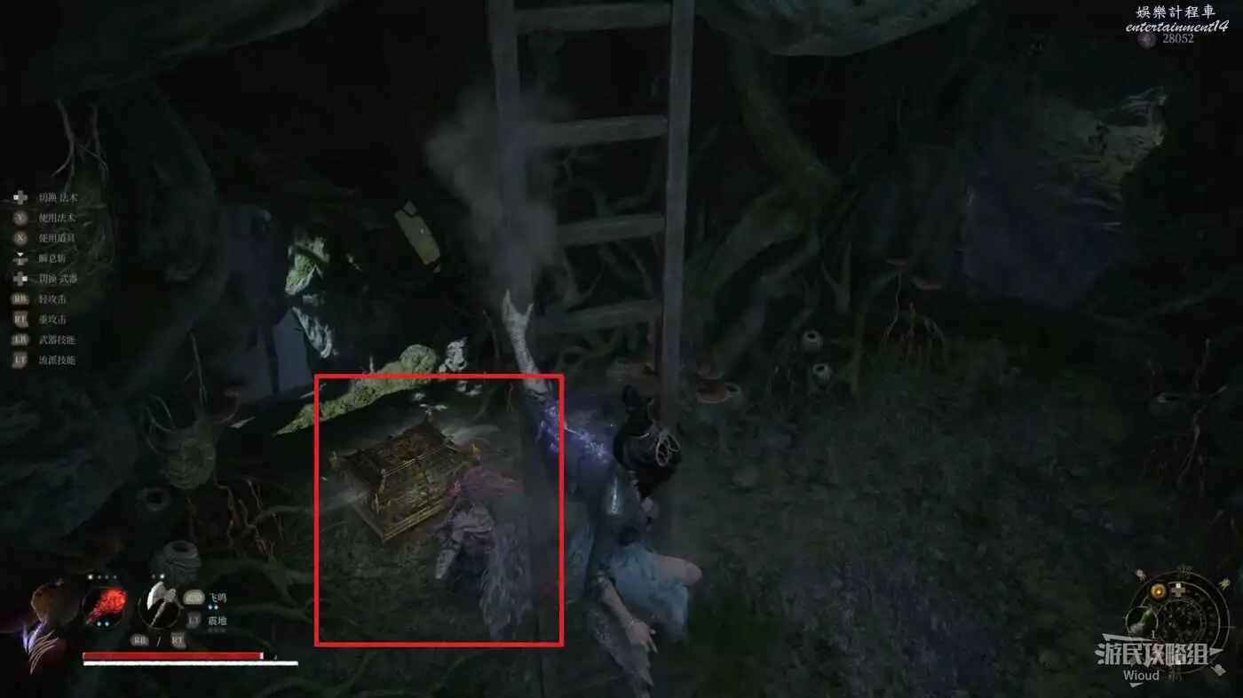 穿過失心洞,出去沒有岔路,經過一段牢籠區可以看到左側有個梯子,梯子下方就是【鳥人沼澤】神龕。
