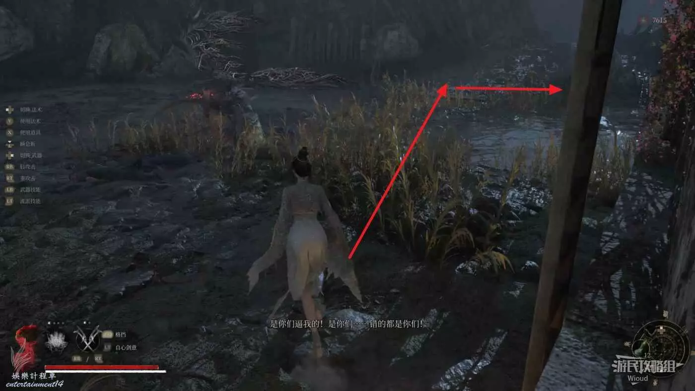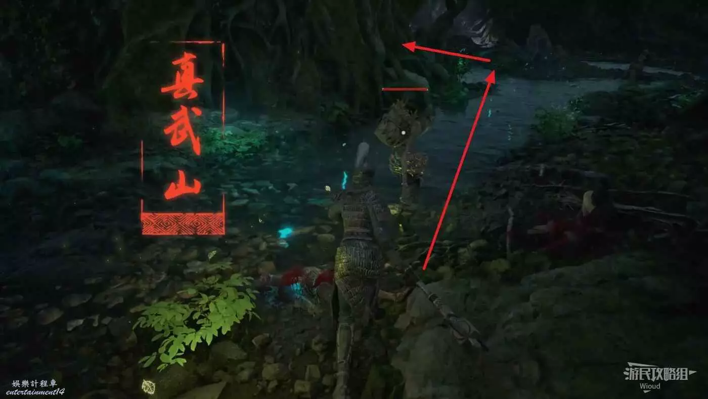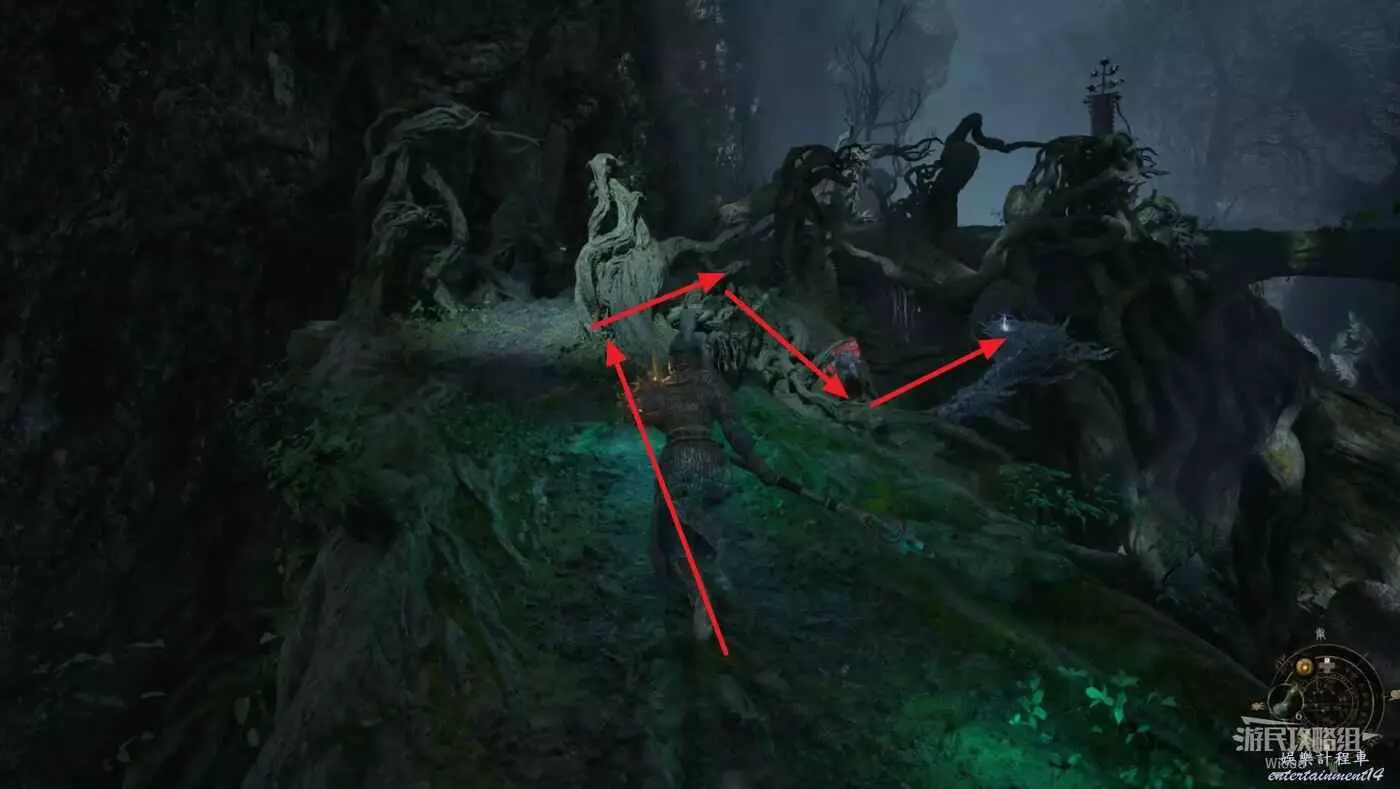 從【真武山】地圖神龕【鳥人沼澤】出發,離開小屋先直走然後往左後方繞。