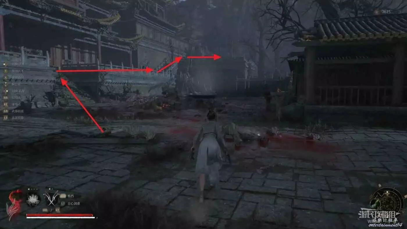 在右一堆罐子的房間處,爬右側的梯子到底層,擊敗下面的紅眼怪從大門出去,開啟對面建築的門,解鎖通往【靈官殿】的近路。