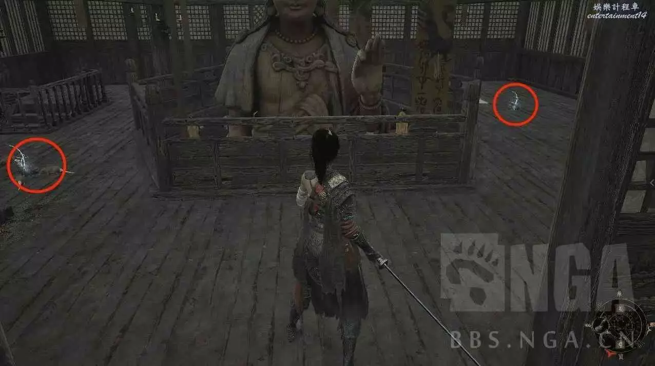圓圈位置是功德箱,豪華版的獎勵在這裡就可以領取!遊戲過程中遺落的重要物品也可以在這裡找到,當箱子內有物品時,會高亮作為提示。