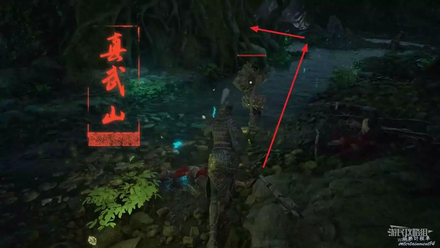 從【真武山】地圖神龕【鳥人沼澤】出發,離開小屋先直走然後往左後方繞。