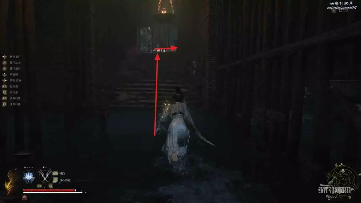 穿過牢房走廊,出去右拐,破壞右邊擋路的棺材,裡面藏著一個寶箱,開啟可獲得這個先神之言。