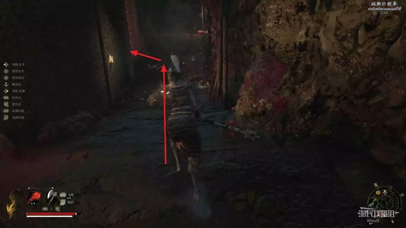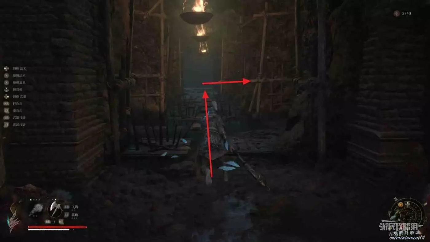 後續中間沒有岔路,沿路往下走,拐角處會不斷有滾石往下落。