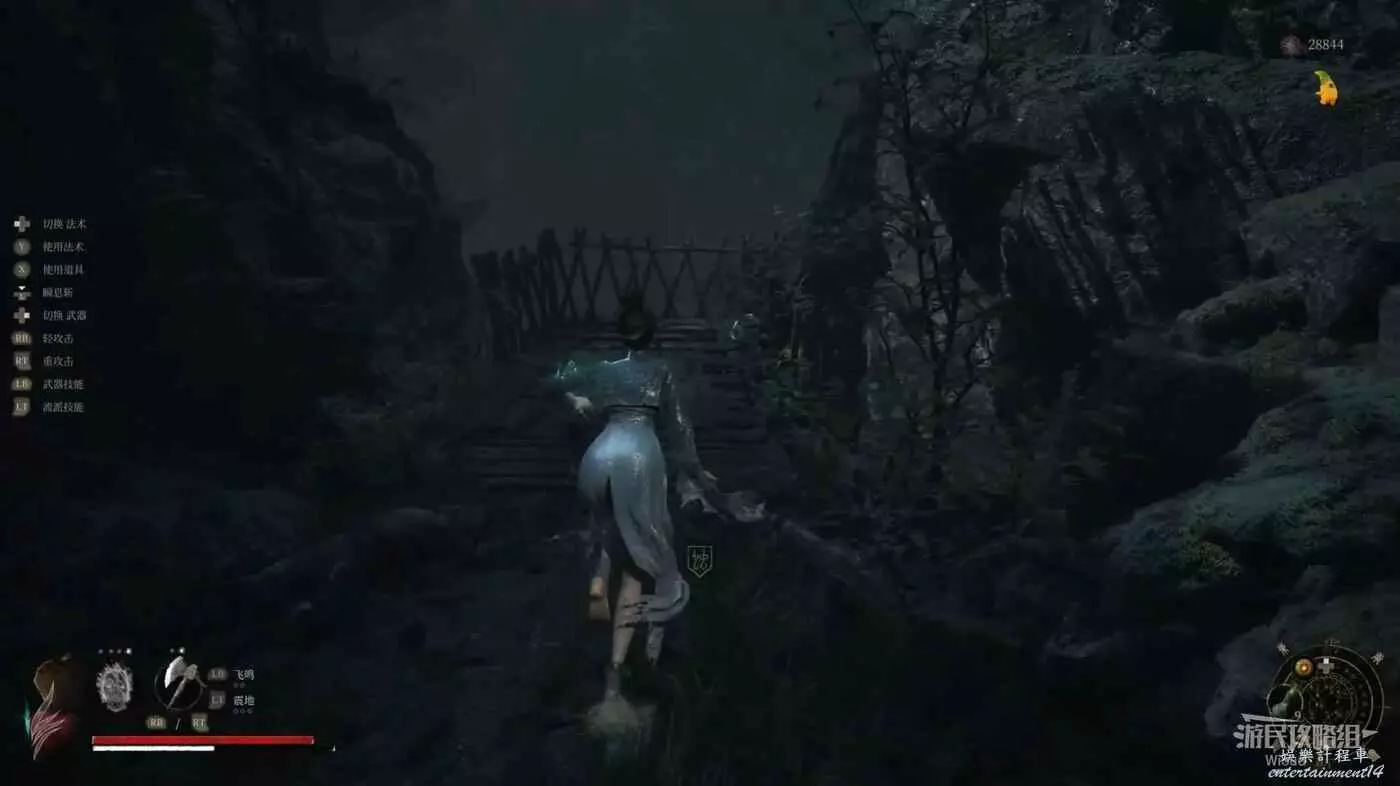 直接從出來的木橋中間,跳到右邊的隱藏橋上,比從起點都是走要簡單許多。