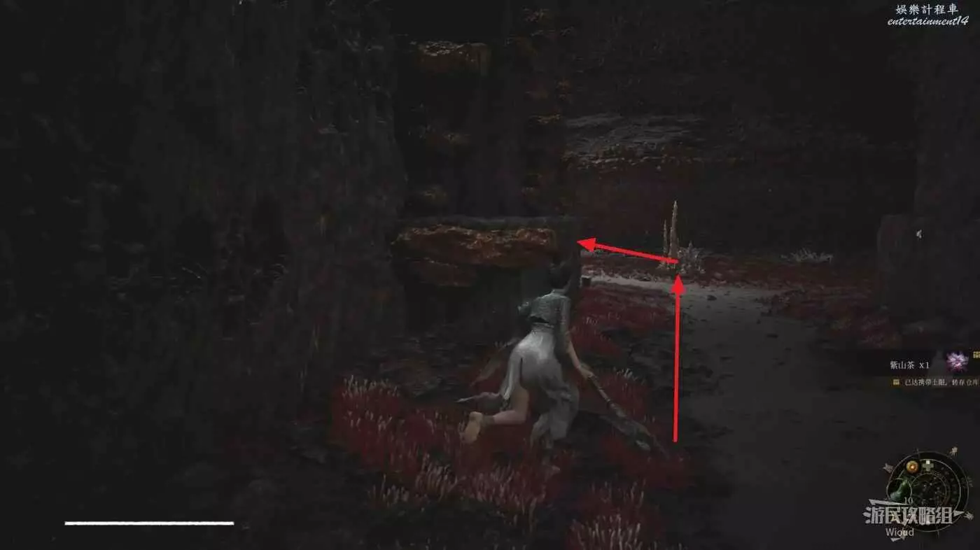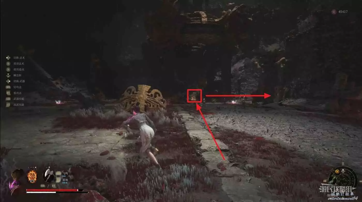 從【僰人古都】地圖神龕【古都深處】出發,背對神龕出去立刻左拐,走到一個開闊區域後往右走。