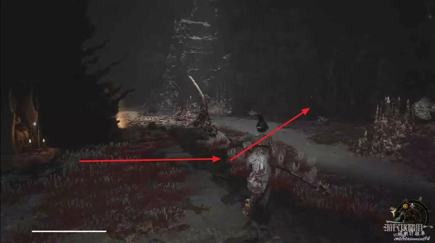直走左拐,開啟遠處的機關,面朝來時的方向走右邊道路,盡頭回到之前的岔路,再次走右側小道。