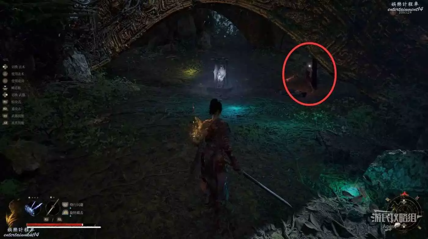 然後換通關前備份的存檔,在古都深處神龕,謎題門故意答錯選擇“再入輪回”,被傳送到新區域“蜀神居所”。