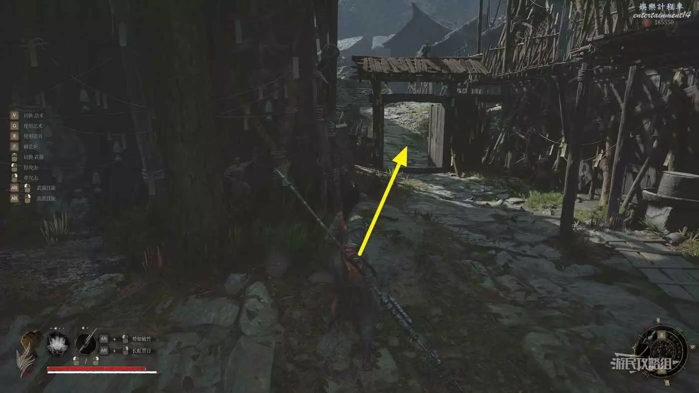 走到頭進門,這個門就是近路,需要從蜀王祠二樓樹幹近路往行宮方向走(就是佛源鎮-丹青苑-陸紅柳這條線往行宮走的方向),然後在分岔路口往下走,不要去山頂,走到木制平台底部右轉(左轉是去行宮),右轉回到蜀王祠方向,繼續往前走就能開啟這個木門。