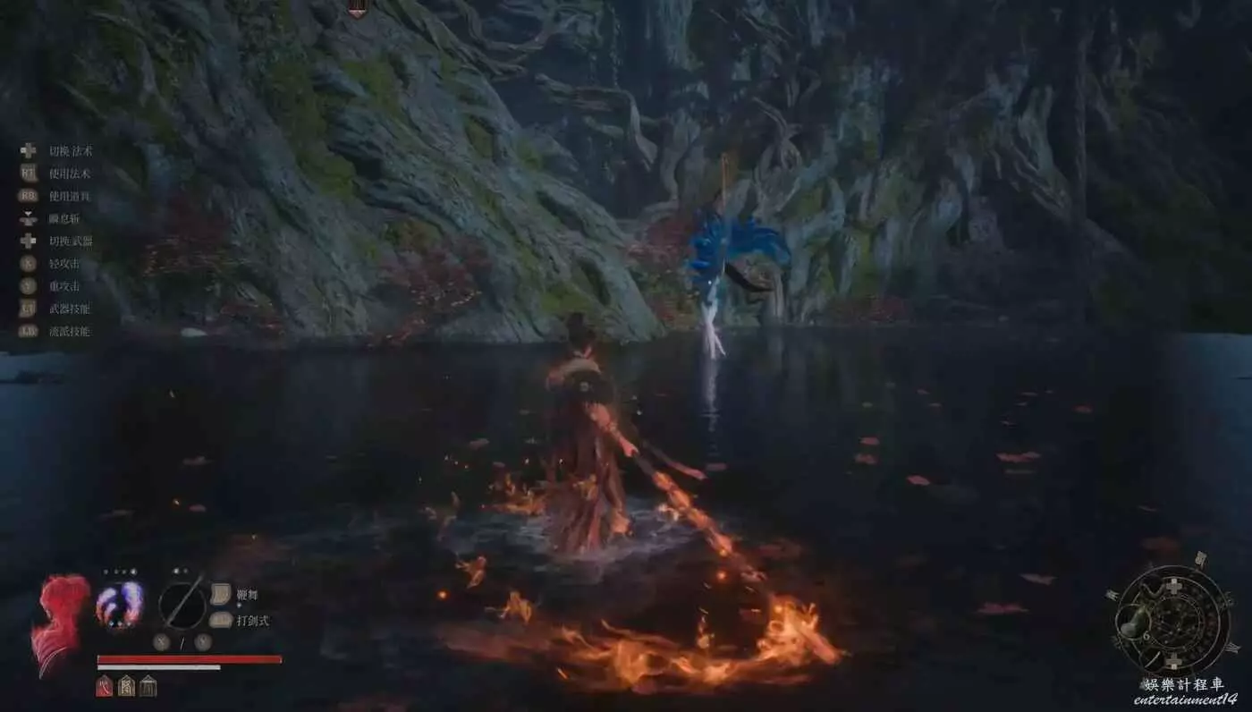 ②舞劍,舞劍有好幾種動作,飛來飛去,最多一段是三連,注意彈刀了也不會打斷boss的攻擊,要一直躲。