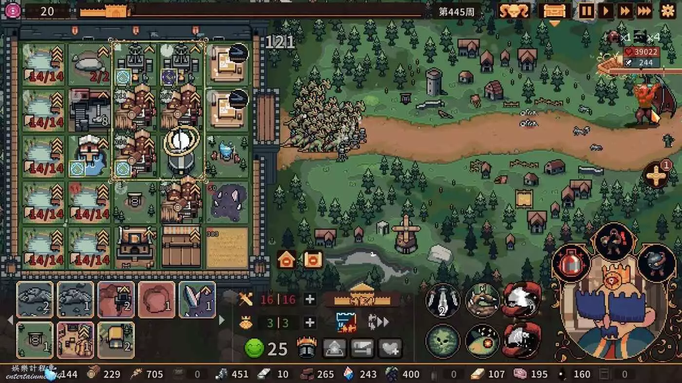 後面只管水、木、肉,不停疊九頭蛇數量,其他資源都是多餘的,水換肉,水、肉造池塘,肉產九頭蛇,木頭升級兵數量上限以及出大型水井。