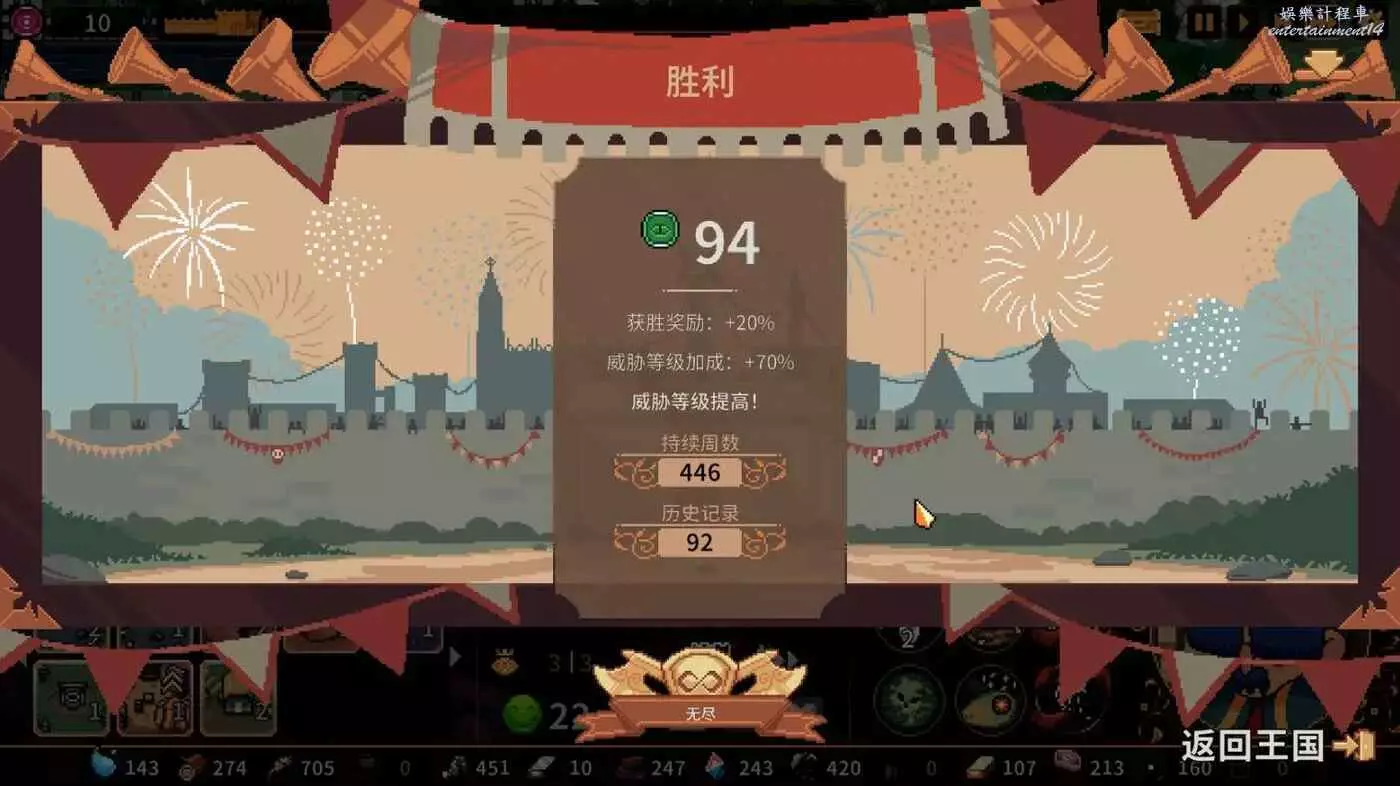 前期靠火槍,只選基本敵人,別加怪,然後巨人當前排過渡,國王技能回血,九頭蛇一出就簡單了,堆九頭蛇數量然後不停升級部隊。便士超級多,刷新很容易就出。