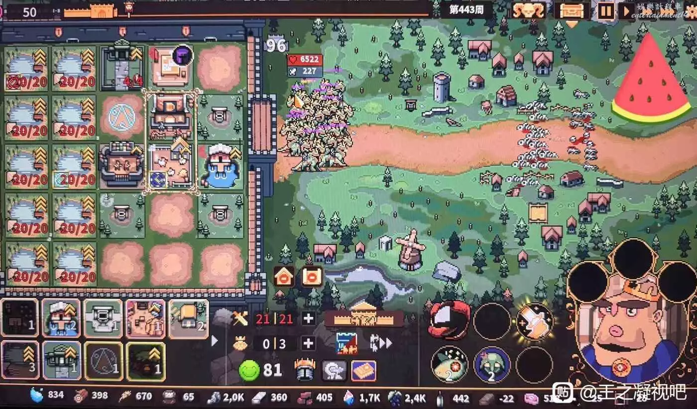王之凝視 (The King is Watching) 輪椅流派分享 3 8 月 2025-08-03 廣告 作者:握🐉先生 來源:bilibili 成型如圖,沒修改,原版遊戲 思路是研究台研究高級生產圖紙,找水產養殖,然後研究經營兵營,找三頭蛇圖紙。需注意,其餘任何圖紙全部轉化掉,不要選,否則會導致建築升級選不到三頭蛇圖紙。 過所有關卡巨輪椅,但是上限堪憂,無盡只能到600周那樣