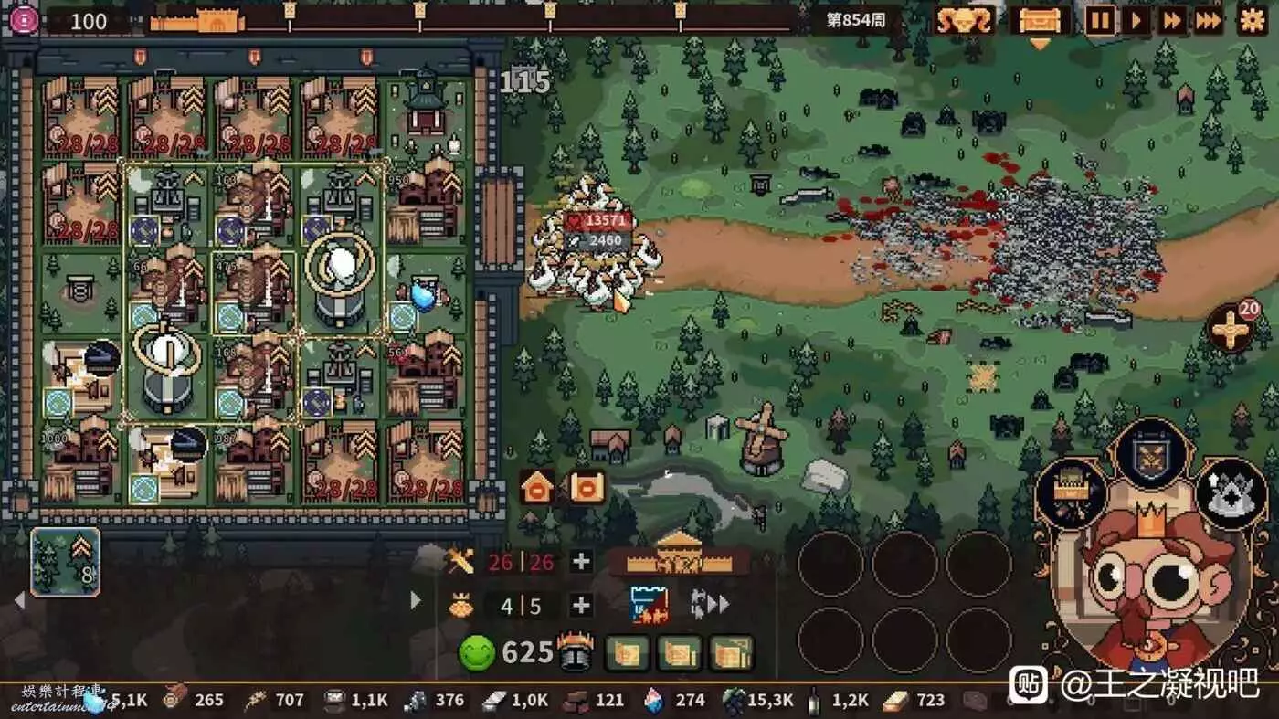 打法就是前期正常過度,只拿大鵝,其他兵不拿,高級建築也不拿,要不污染池子,賢者國王可以吞圖紙加士氣,不要貪圖紙。有幾頭鵝之後就找凝視他跟升級塔,兩個凝視,3個升級,兩個研究台研究鋸木廠,多餘圖紙全拆了加士氣,其他都造鋸木廠,升到2000攻擊就可以解放雙手了,全拆,造醫院跟麥田掛機了,2000攻30只鵝子基本一波沖死
