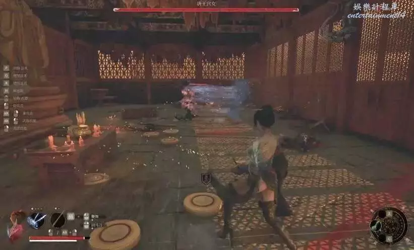 應對唐王宮女(行宮)的方法其實很簡單,即在正對boss的時候,當boss進攻時,朝著boss的左後方閃避(也就是無常的右前方),就可以閃掉幾乎所有攻擊。