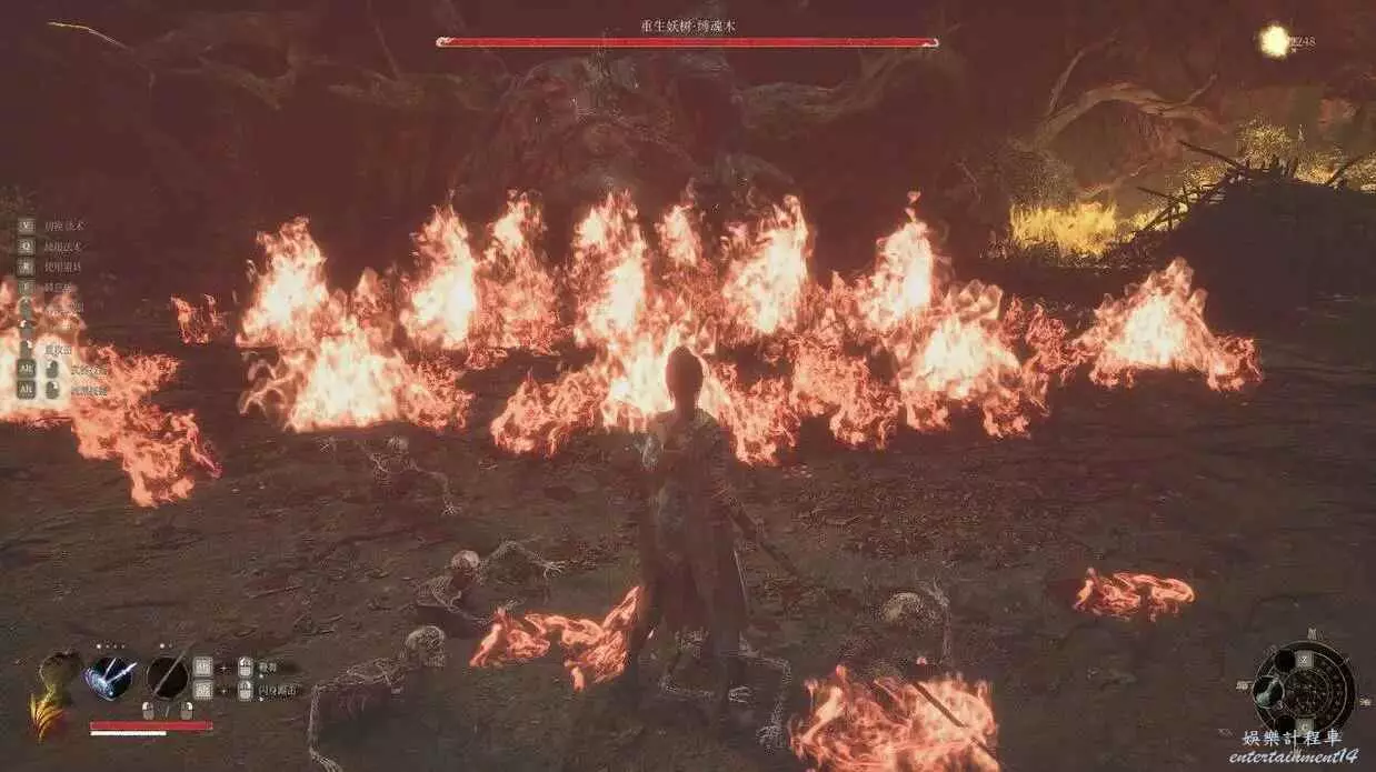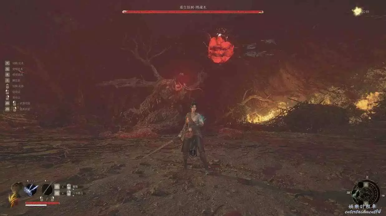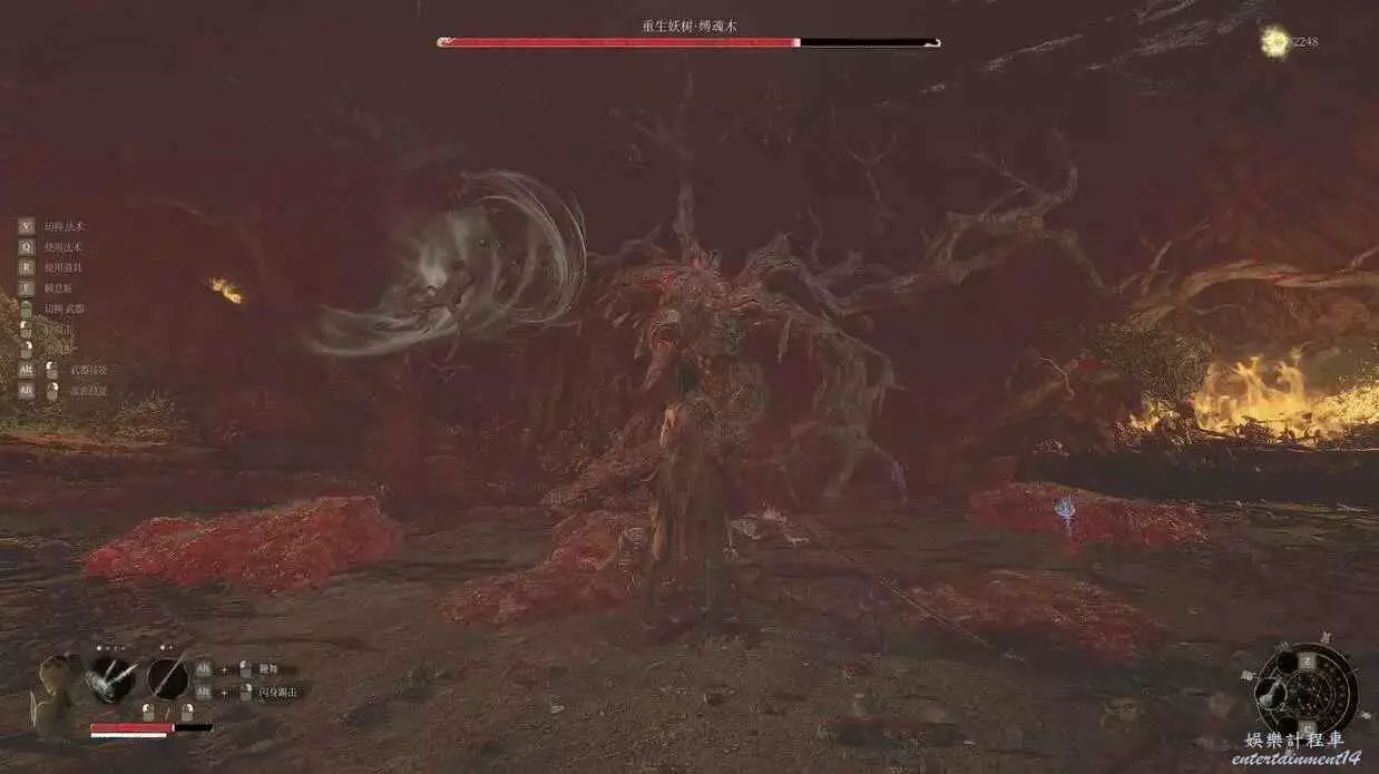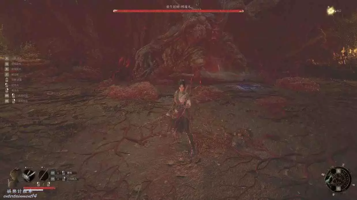 打縛魂木之前,我們會遇到一個鳥頭錦衣衛,擊敗他我們就會的到至關重要的法術連火珠,它可以用來克制縛魂木,打出高額傷害。戰鬥中縛魂木的只會在血池中發起攻擊,招式簡單易躲,所以我們只要找準時機用輕攻擊蹭能量,用連火珠來轟炸即可輕鬆擊敗。