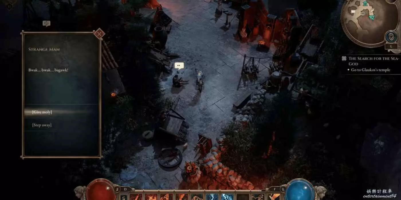 在皮爾戈斯村(Pyrgos Village),你會遇到一個行為怪異的“怪人(Strange Man)”NPC,他會像雞一樣發出咯咯的叫聲。
