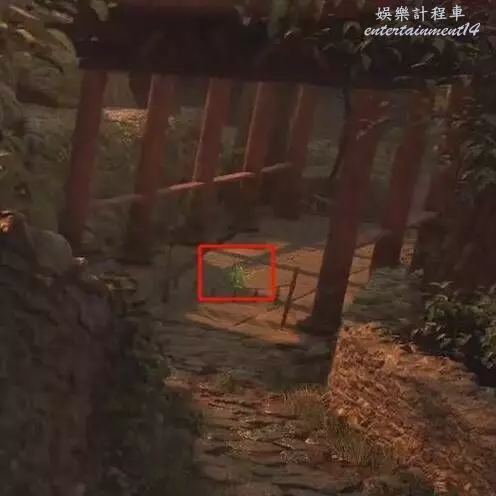面對神龕向左邊走,岔路口繼續走左邊,不要穿過木橋,直接從右邊跳下去,沿著木板一路前進,小心機關,然後貼著右邊牆壁前進,然後從左邊的牆壁缺口跳到外面,接著往右走,沿著斜坡上到平台上,就能看到竹筍怪,擊敗即可獲取。