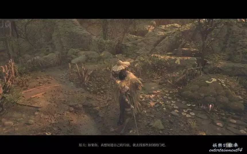 在觀音殿左側的台階處,有一扇門,正確答案是“羽化飛升”,選擇錯誤答案,可以進入“蓮池”,擊殺一個精英怪(可以獲得技能點1個)後,出房間左拐進去菜園子,可以看到船夫。