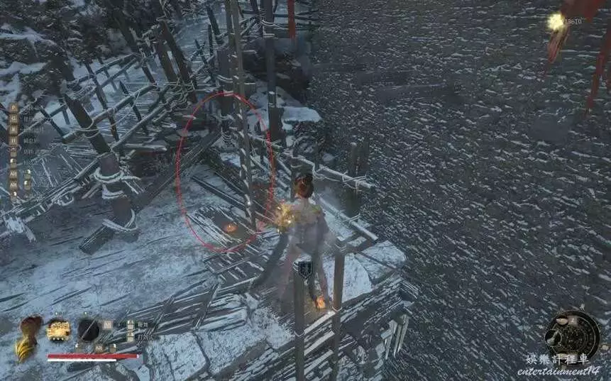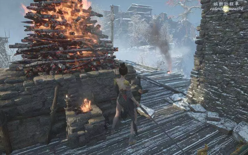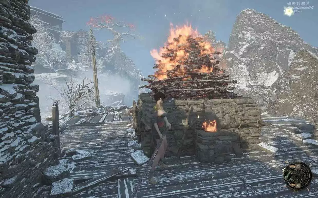 往左走,道路的右側會看到梯子,上去點燃第二個烽火台。注意,第一個梯子上去後,旁邊就是下來的長梯子,一會踢下來。