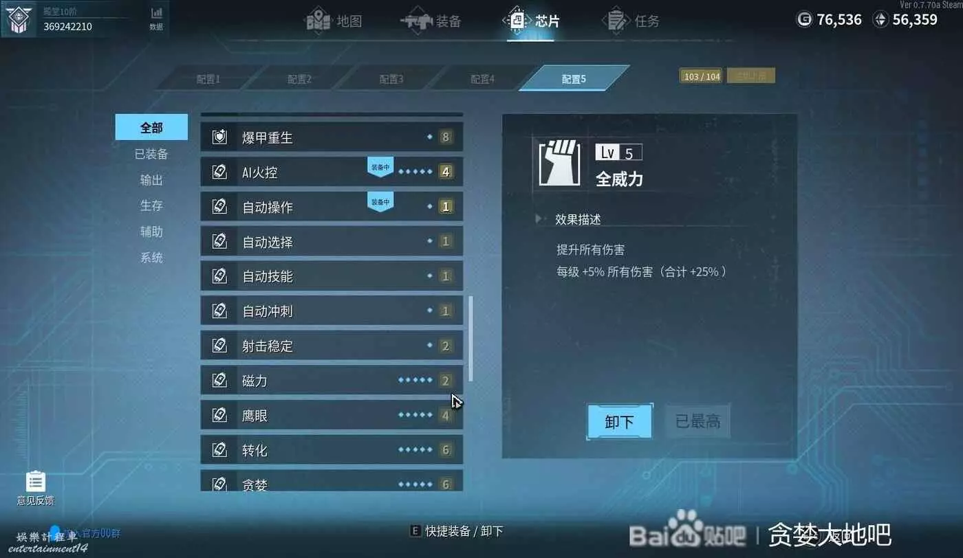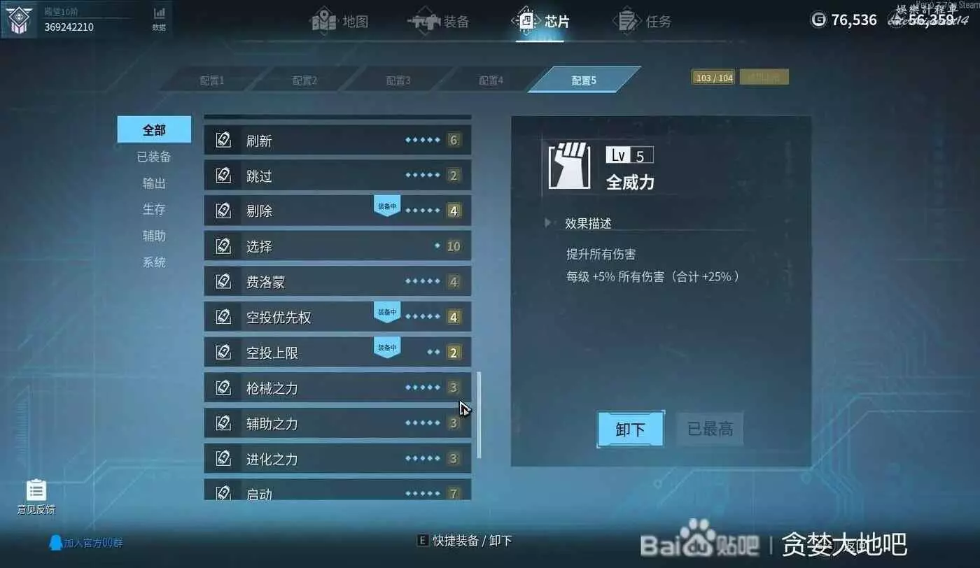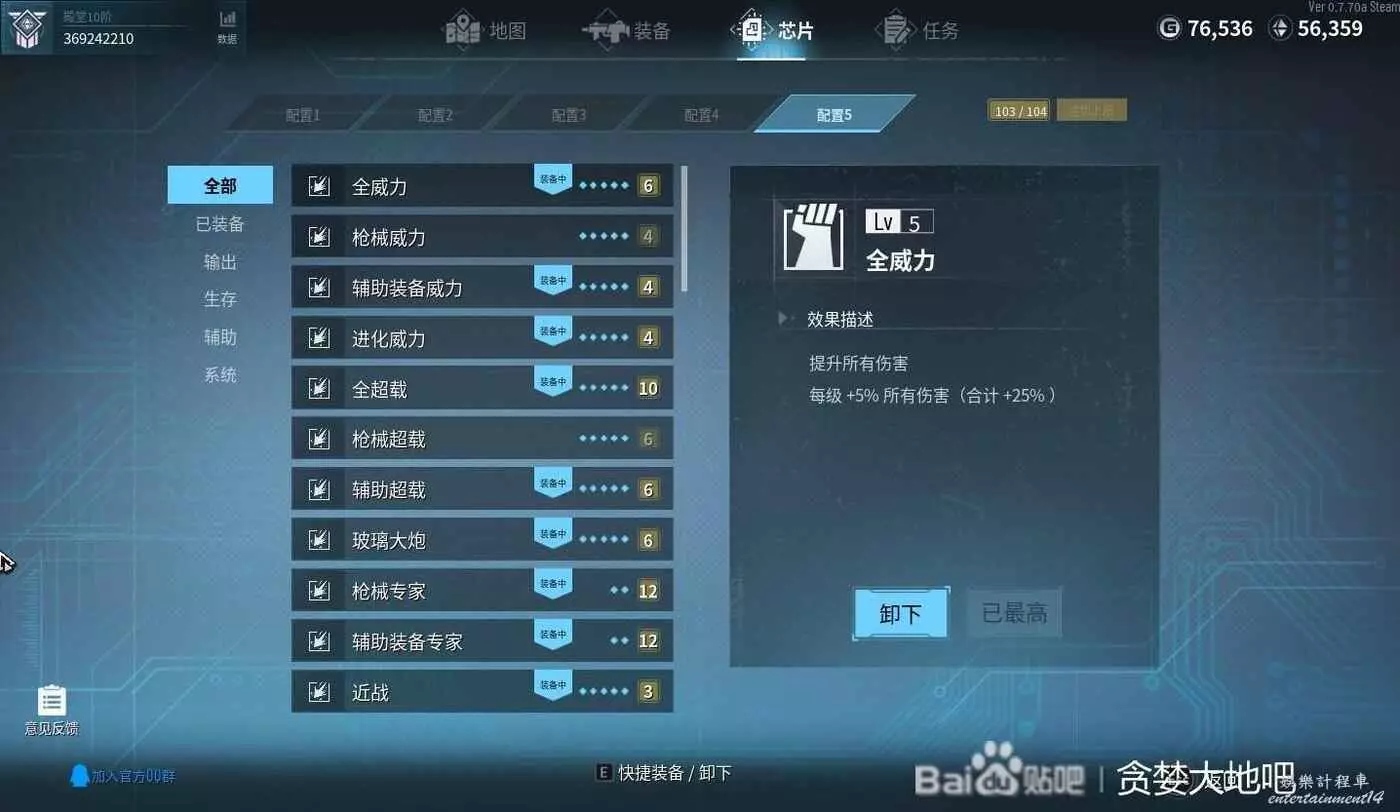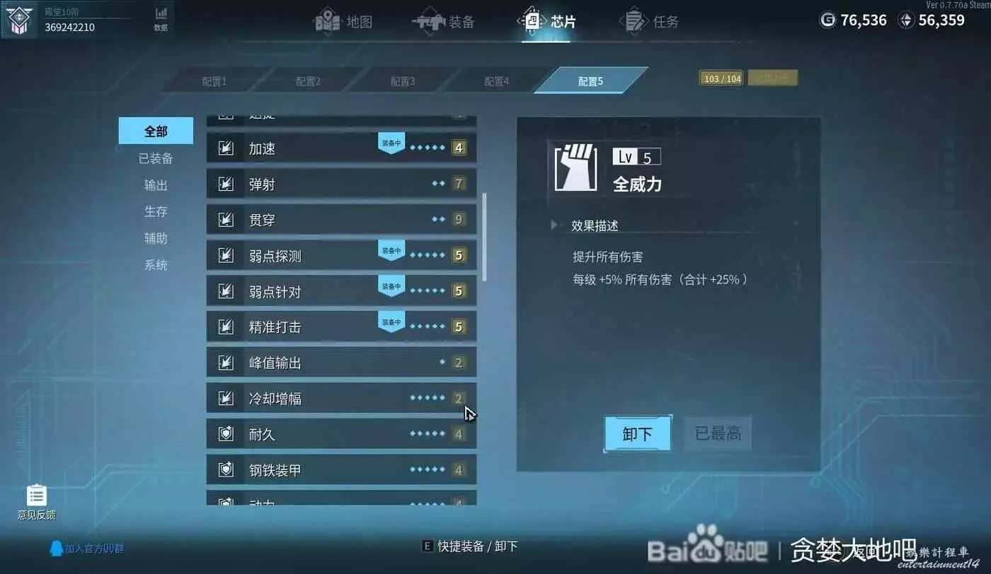這套晶片的配置就是提高輔助武器的輸出,能提高輔助武器傷害以及速度的晶片全選,包括玻璃大炮、近戰(增加近距離怪物收到的傷害)、精準打擊有待驗證,我是選了。增加主武器傷害的晶片不選,因為主武器就1個,輔助有8個,主要輸出還是靠輔助武器。