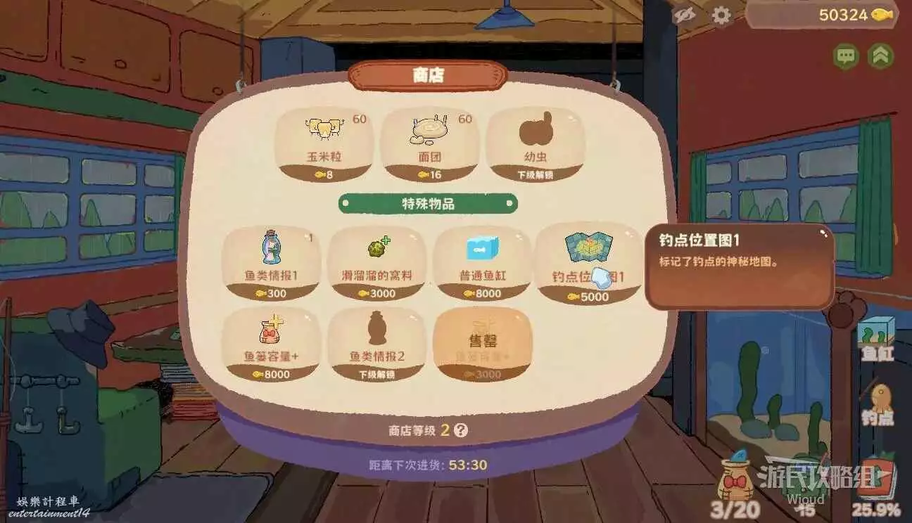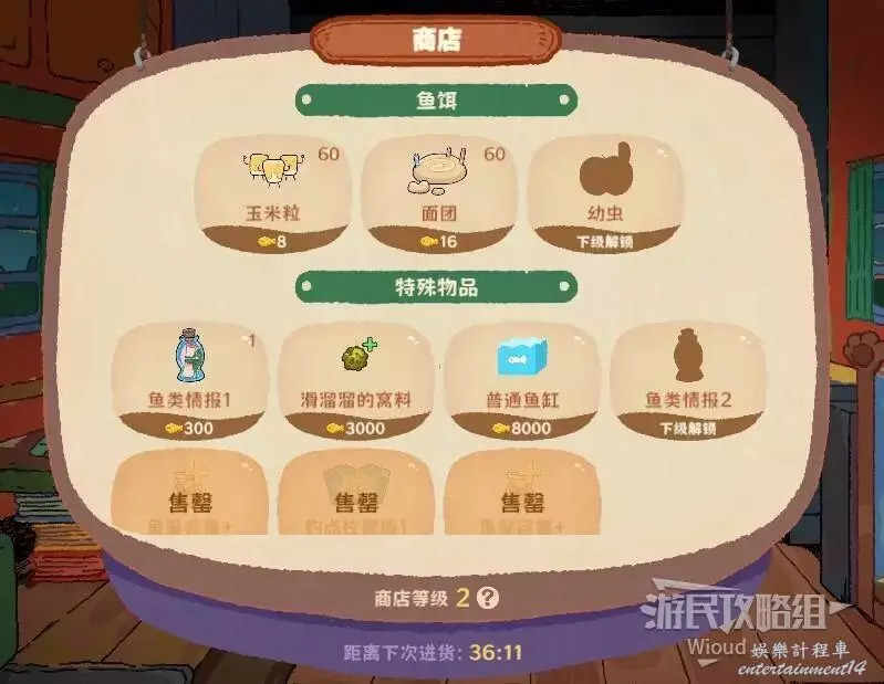 【道具商店】主要售賣各類魚餌和特殊物品,物品通常有商店等級限制。